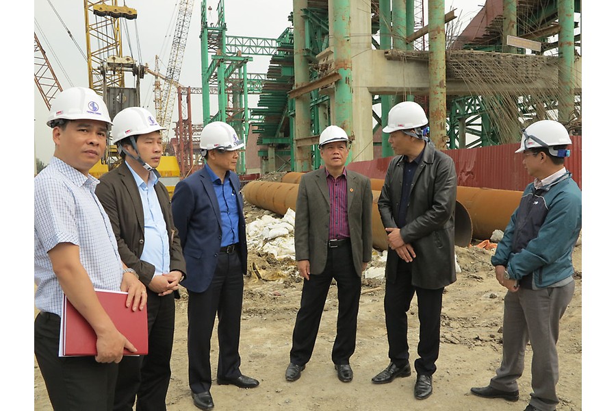 Đồng chí Nguyễn Xuân Bình, Phó chủ tịch Thường trực UBND thành phố kiểm tra tiến độ thi công xây dựng cầu Hoàng Văn Thụ