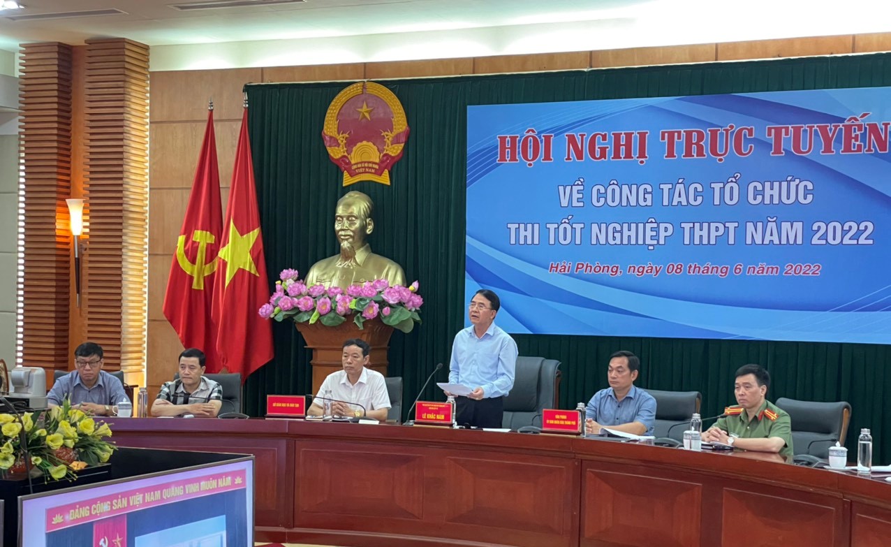 Sáng 8/6, Ban Chỉ đạo thi cấp Quốc gia Kỳ thi tốt nghiệp THPT năm 2022 tổ chức Hội nghị trực tuyến về công tác tổ chức Kỳ thi tốt nghiệp THPT năm 2022. Bộ trưởng Bộ Giáo dục và Đào tạo Nguyễn Kim Sơn dự và chỉ đạo Hội nghị. Tại điểm cầu thành phố Hải Phòng, Phó Chủ tịch UBND thành phố Lê Khắc Nam chủ trì Hội nghị.