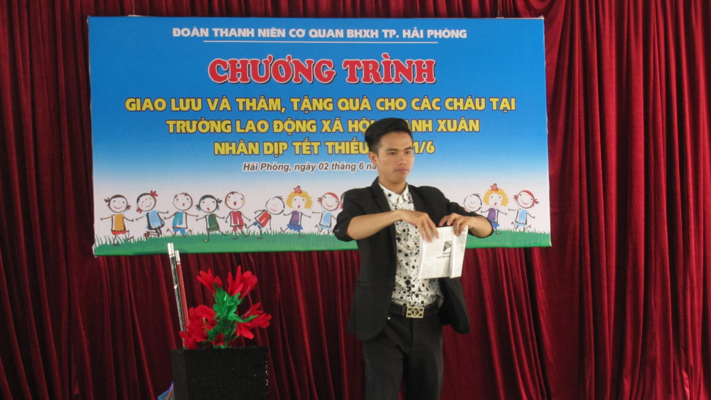 Với mong muốn mang đến cho các cháu thiếu nhi Trường lao động xã hội Thanh Xuân đón một Tết Thiếu nhi thực sự vui tươi, ý nghĩa, Đoàn thanh niên cơ quan BHXH thành phố đã đem đến nhiều tiết mục nghệ thuật sôi động, đặc sắc như: Ảo thuật, văn nghệ, trò chơi có thưởng…
