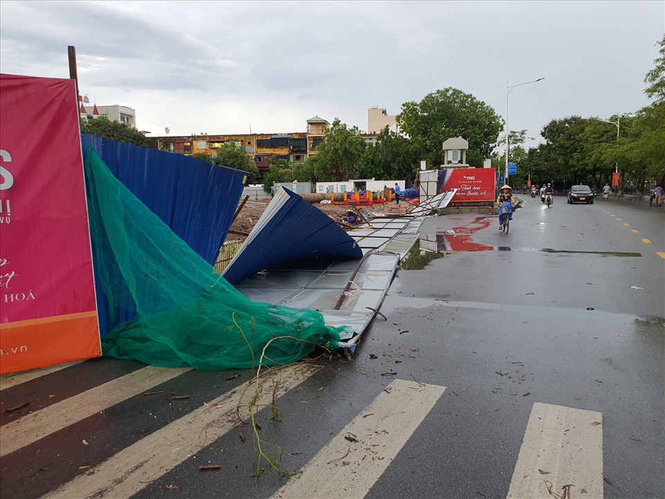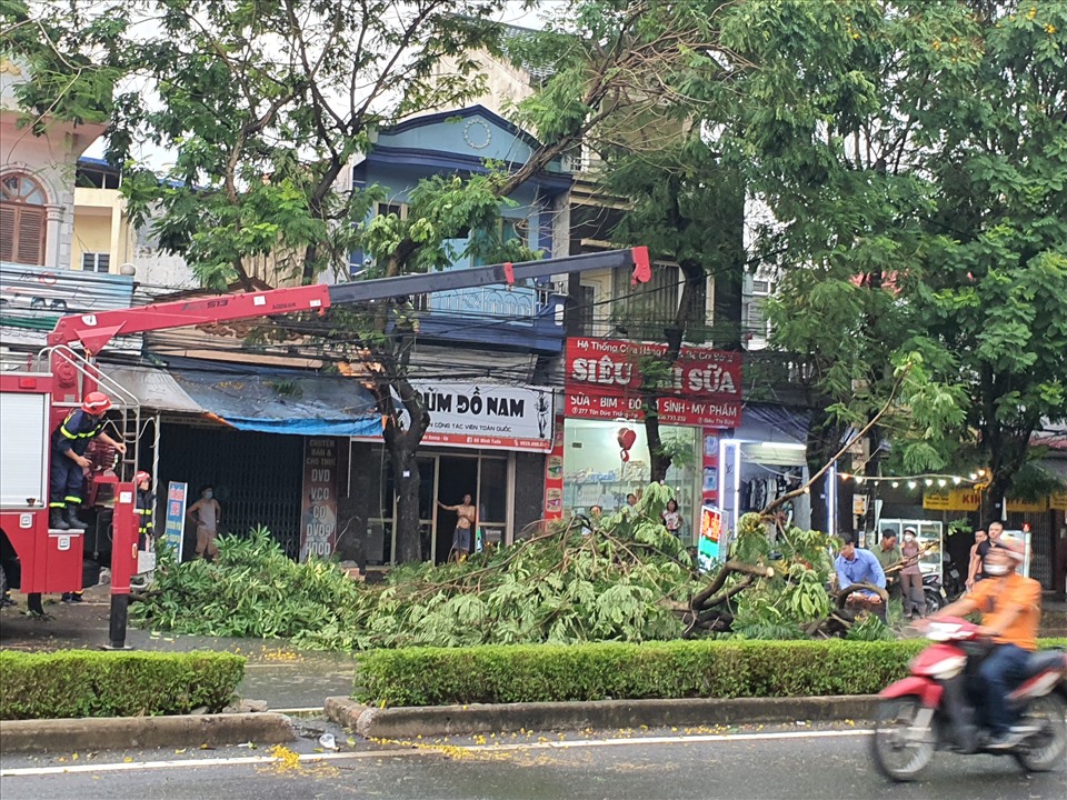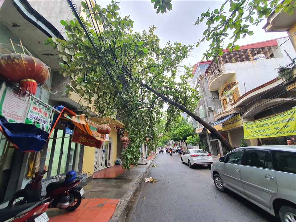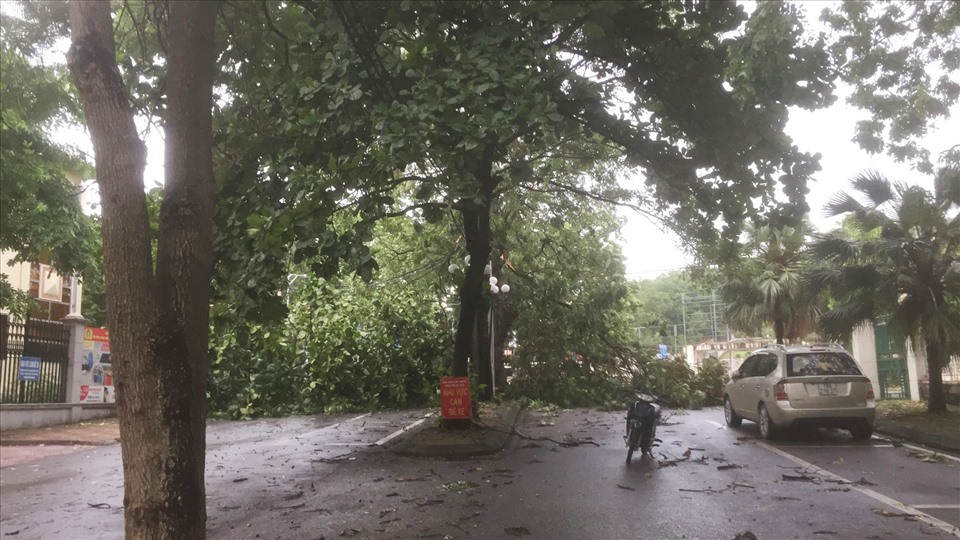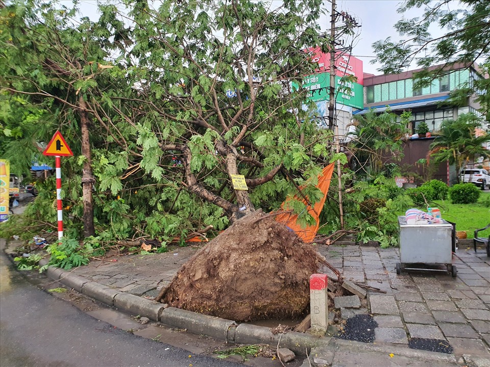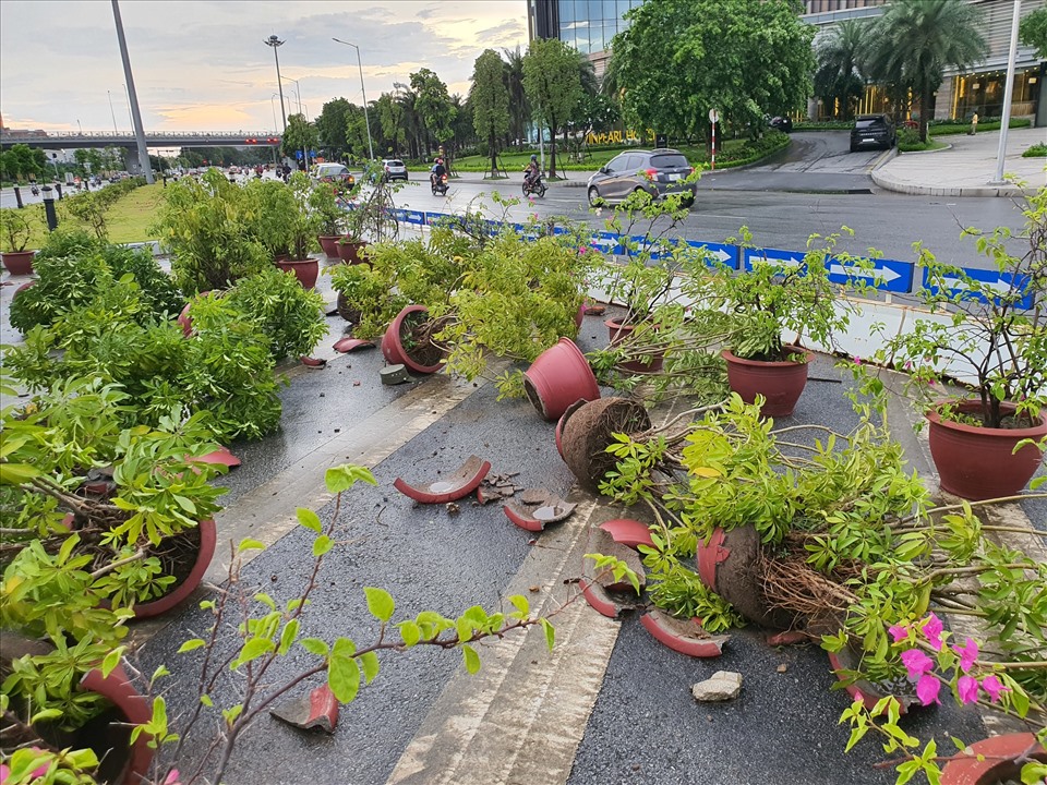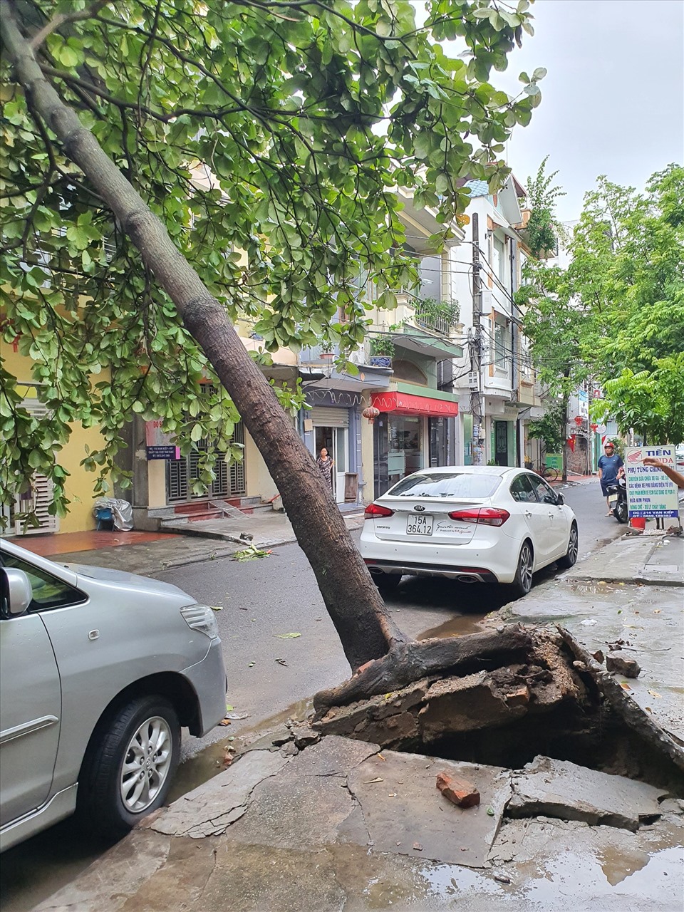 Do ảnh hưởng của bão số 1, chiều 2.7, tại Hải Phòng xuất hiện mưa giông trên diện rộng. Cơn giông đầu giờ chiều khiến nhiều cây xanh ở các tuyến phố trung tâm bị bật gốc, gẫy đổ. Ghi nhận của PV Lao Động, một cây bàng vỉa hè phố Vạn Kiếp (quận Hồng Bàng) bật gốc. Ảnh: H.H.Cây bàng bật gốc đổ sang phía bên kia đường. Rất may, sự cố không gây thiệt hại về người.Ngay dải trung tâm TP.Hải Phòng, một cây xanh gẫy đổ trên đường Trần Phú. Chỉ ít phút sau, các nhân viên môi trường, cây xanh đã nhanh chóng khắc phục sự cố, bảo đảm giao thông cho khu vực này.Trước cửa số nhà 273 phố Tôn Đức Thắng cũng xảy ra tình trạng cây xanh gẫy đổ. Tuy nhiên, lực lượng Cảnh sát Phòng cháy chữa cháy và cứu nạn cứu hộ TP.Hải Phòng và nhân viên Công ty Công viên cây xanh đã phối hợp thu dọn cành cây đổ gẫy.Khu vực ngã tư Cơ điện, một cây phượng bật gốc sau trận mưa giông.Cây phượng ngã đổ về phía vỉa hè nên không gây cản trở giao thông cho khu vực này.Loạt chậu cảnh đổ rạp khu vực vòng xuyến trước toà nhà 45 tầng phường Sở Dầu, quận Hồng Bàng.Hàng chục chậu cây đổ, vỡ, ngổn ngang sau cơn mưa giông do ảnh hưởng của bão.Không chỉ khiến hàng loạt cây xanh gẫy đổ, trận mưa giông khoảng 15h ngày 2.7 còn khiến bờ rào Công trình thi công Dự án tổ hợp 5 sao chỉnh trang khu vực Chợ Sắt bị đổ rạp.Một đoạn tôn chắn dài cả trăm mét đổ rạp sau trận mưa giông.Khu vực gần Văn phòng một cửa UBND huyện Thuỷ Nguyên, một cây bàng lớn đổ ngang đường. Nhiều cành phượng cũng gẫy đổ sau trận mưa. Theo dự báo, từ chiều tối và đêm 2.7 đến ngày 3.7, do ảnh hưởng của hoàn lưu bão số 1, Hải Phòng và các tỉnh đông Bắc Bộ có mưa vừa, mưa to, có nơi mưa rất to và dông, có nơi trên 100mm. Ảnh: CTV.