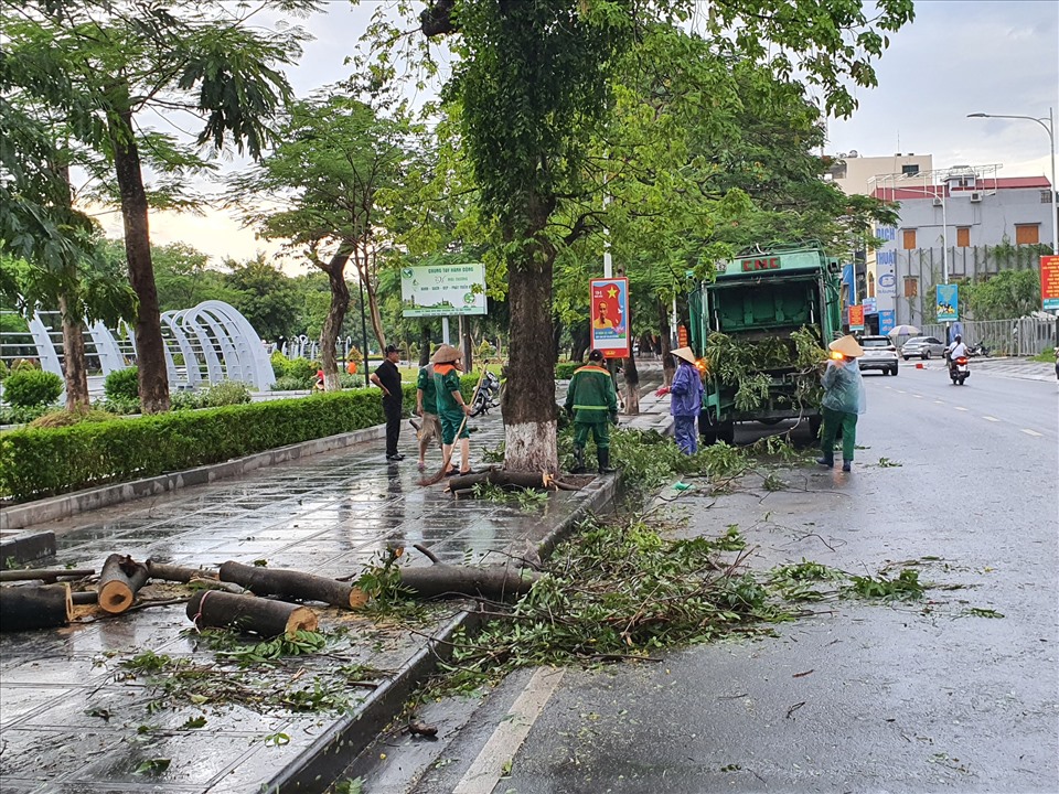 Sau trận giông lốc do ảnh hưởng của bão số 1, nhiều cây xanh ở các tuyến phố trung tâm TP.Hải Phòng gãy, đổ ngổn ngang, rất may không gây thiệt hại về người.