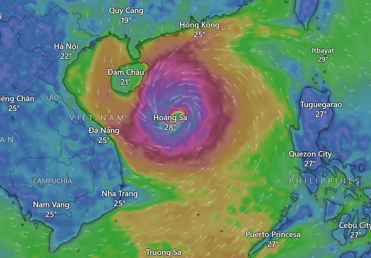 Dự báo vị trí tâm bão số 6 Trà Mi trên vùng biển Hoàng Sa của Việt Nam hồi 7h ngày 26.10.2024. Video: Windy.com