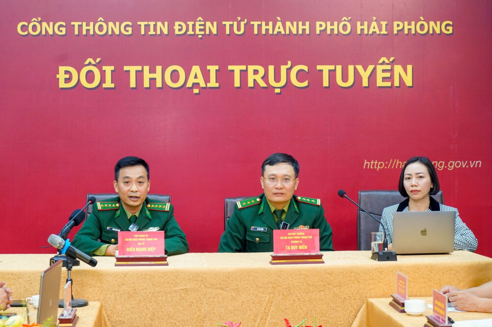 Với Chủ đề “Xây dựng lực lượng, bảo vệ vững chắc chủ quyền vùng biển, đảo của Tổ quốc và thực thi nhiệm vụ Biên phòng trên khu vực biên giới biển thành phố”, chiều 28/11, trên Cổng Thông tin điện tử thành phố Hải Phòng, Thượng tá Tạ Duy Hiển, Chỉ huy Trưởng BĐBP thành phố và Đại tá Kiều Mạnh Hiệp, Phó Chính ủy BĐBP thành phố tham dự Đối thoại cung cấp thông tin về truyền thống, những chiến công, thành tích nổi bật, đặc biệt xuất sắc của BĐBP thành phố Hải Phòng qua 65 năm xây dựng, chiến đấu và trưởng thành… từ đó, góp phần cùng chính quyền, quân và Nhân dân thành phố thực hiện thắng lợi nhiệm vụ xây dựng, bảo vệ Tổ quốc Việt Nam xã hội chủ nghĩa.