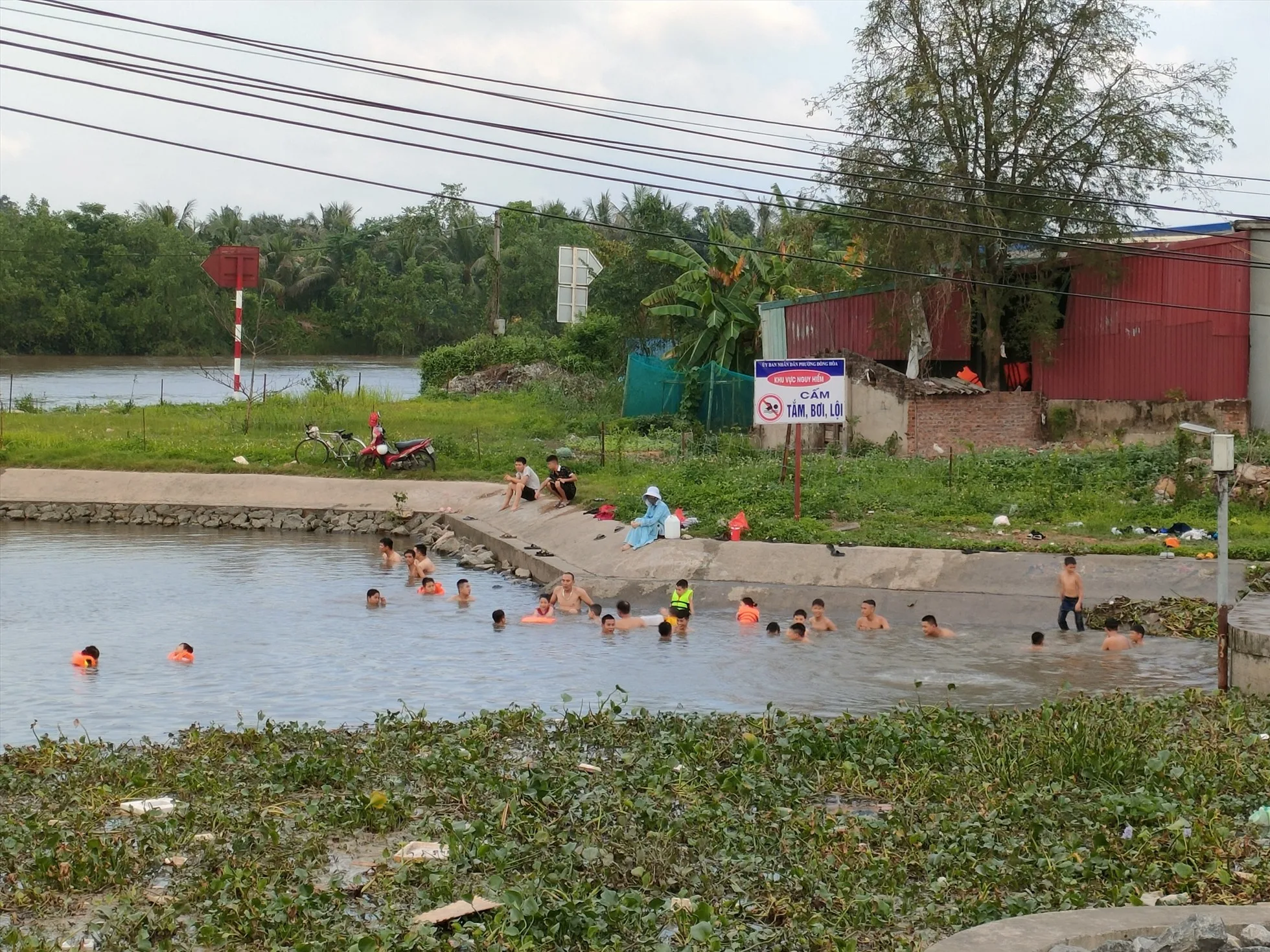Cống Mỹ Khê (quận Kiến An, Hải Phòng) là khu vực nước sâu nguy hiểm, có gắn cảnh báo cấm bơi, lội. Tuy vậy, nhiều ngày qua, khu vực này trở nên đông đúc vào mỗi buổi chiều khi nhiều người dân đến bơi, tắm giải nhiệt, trong đó, có cả trẻ em.