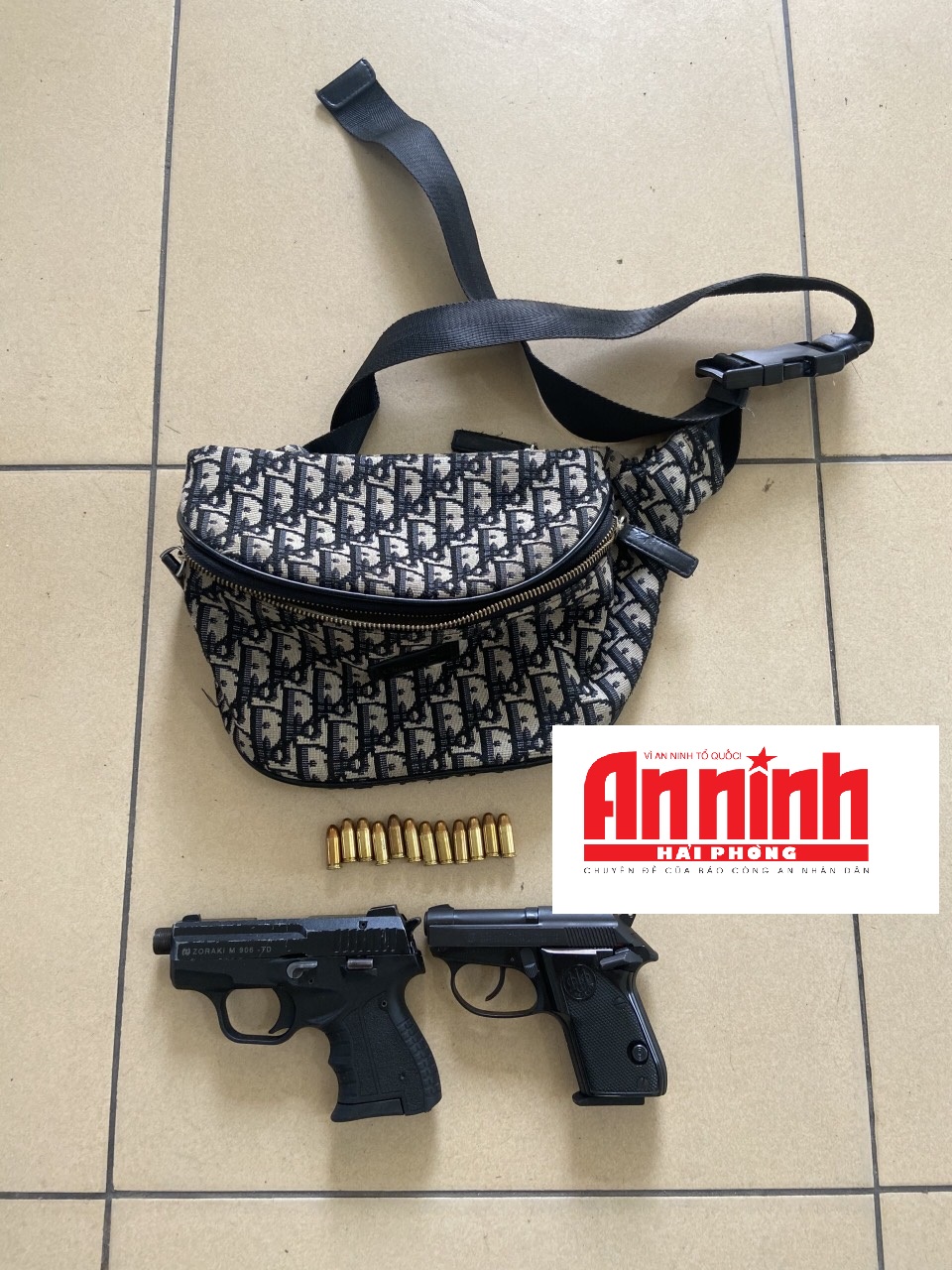 Cụ thể, vào khoảng 10h30’ ngày 29-4, qua công tác nghiệp vụ kết hợp quản lý địa bàn, Tổ công tác thuộc Đội CSHS Công an quận Lê Chân kết hợp với Đội Cảnh sát GTTT Công an quận phát hiện bắt quả tang tại số 8056 Thiên Lôi, phường Kênh Dương, 2 nam giới điều khiển xe mô tô nhãn hiệu AirBlade BKS 15B2 47550 mang theo 3 khẩu súng ngắn, 18 viên đạn và 4 biển số xe máy.
