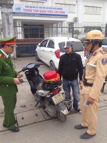 Vào 15h30 ngày 30/1, tại khu vực Trạm thu phí cầu Bính, thuộc thôn 5, xã Tân Dương, huyện Thủy Nguyên, qua công tác nghiệp vụ, tổ công tác Phòng Cảnh sát phòng chống tội phạm môi trường (PC49)- CATP do Trung tá Đào Ánh Dương chỉ huy phối hợp cùng Trạm CSGT Lưu Kiếm- PC67 phát hiện, bắt quả tang đối tượng Nguyễn Đào Anh Tùng, sinh 1994, ở số 325/3 đường Lý Thường Kiệt, phường Phạm Hồng Thái, quận Hồng Bàng đang có hành vi vận chuyển, tàng trữ trái phép pháo nổ. Qua kiểm tra, tổ công tác thu giữ 3 bánh pháo nổ, loại Trung Quốc sản xuất, tổng trọng lượng 2,6kg.