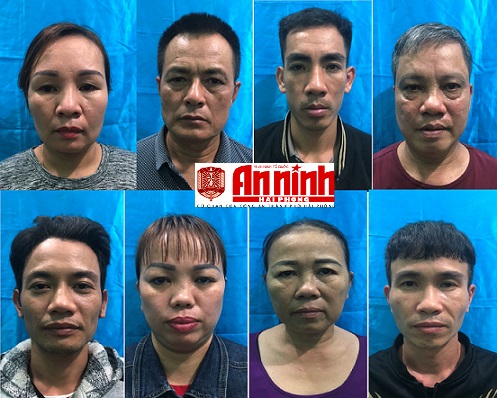Các đối tượng gồm: Nguyễn Văn Chép (chủ nhà); Nguyễn Thị Hằng, sinh 1978; Phạm Văn Bằng sinh 1965; Trần Thị Thuy, sinh 1964; Phạm Văn Cương, sinh 1983; Nguyễn Văn Sơn, sinh 1976, cùng trú tại xã Đông Phương, huyện Kiến Thụy; Nguyễn Văn Tuấn, sinh 1990, trú tại thôn Lão Phú, xã Tân Phong, huyện Kiến Thụy và Nguyễn Thị Cảnh, sinh 1982, trú tại phường Hưng Đạo, quận Dương Kinh.