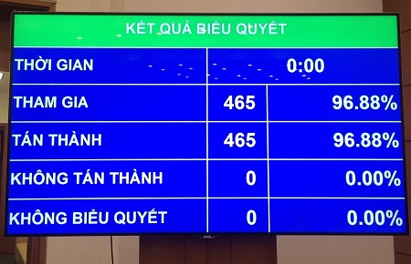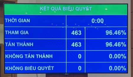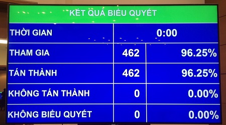 Nghị quyết bầu các ông Nguyễn Đắc Vinh, Lê Quang Huy, Vũ Hải Hà được thông qua với 463/463 đại biểu Quốc hội tham gia biểu quyết tán thành.