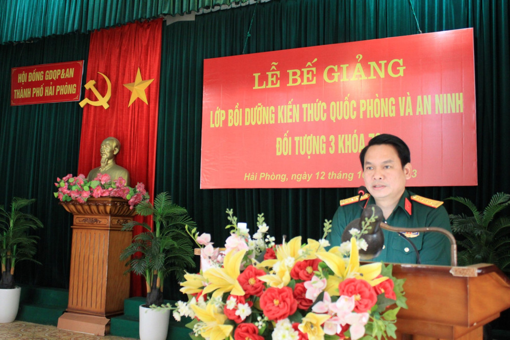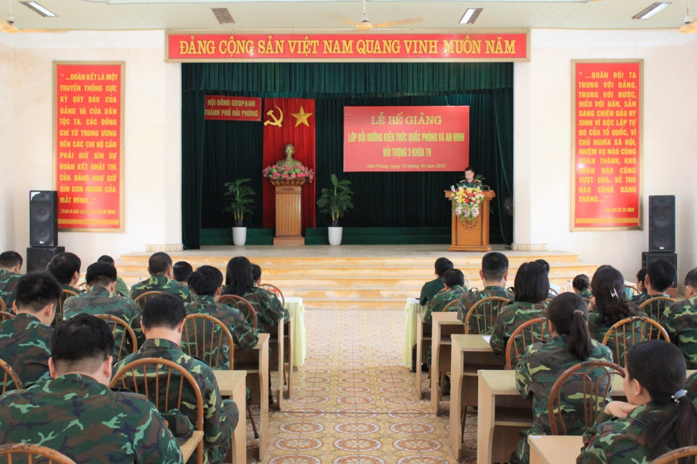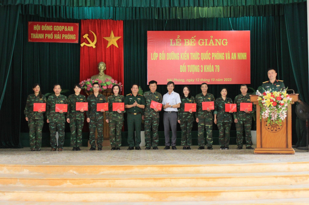 Sáng 12/10, Tại Trung đoàn Bộ binh KTT 836-Hội đồng giáo dục quốc phòng an ninh (QPAN) thành phố Hải Phòng đã tổ chức Bế giảng lớp bồi dưỡng kiến thức QPAN khóa 79, cho 76 đồng chí cán bộ chủ chốt là: Bí thư, Phó Bí thư Đảng ủy; Chủ tịch, Phó Chủ tịch HĐND; UBND và Chủ tịch ủy ban MTTQ Việt Nam cấp xã trên địa bàn thành phố.