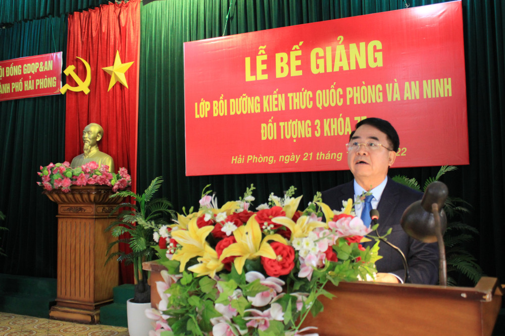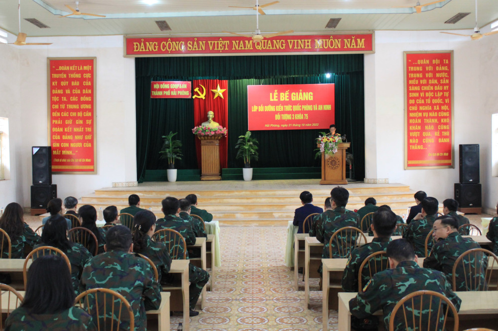 Phát biểu tại Lễ Bế giảng, Phó Chủ tịch UBND thành phố Lê Khắc Nam đánh giá cao sự chuẩn bị của các báo cáo viên, học viên để khóa Bồi dưỡng hoàn thành theo đúng chương trình. Trên cơ sở các nội dung học tập, nghiên cứu, Phó Chủ tịch Lê Khắc Nam mong muốn các đồng chí học viên trên cương vị chức trách được giao, thời gian tới sẽ làm tốt công tác tham mưu, xây dựng lực lượng vũ trang nói chung, lực lượng Dân quân tự vệ, Dự bị động viên nói riêng vững mạnh, sẵn sàng xử trí các tình huống, thực sự là lực lượng lòng cốt, tin cậy của cấp ủy chính quyền địa phương trong phát triển kinh tế xã hội gắn với quốc phòng an ninh, đáp ứng với yêu cầu nhiệm vụ trong tình hình mới.