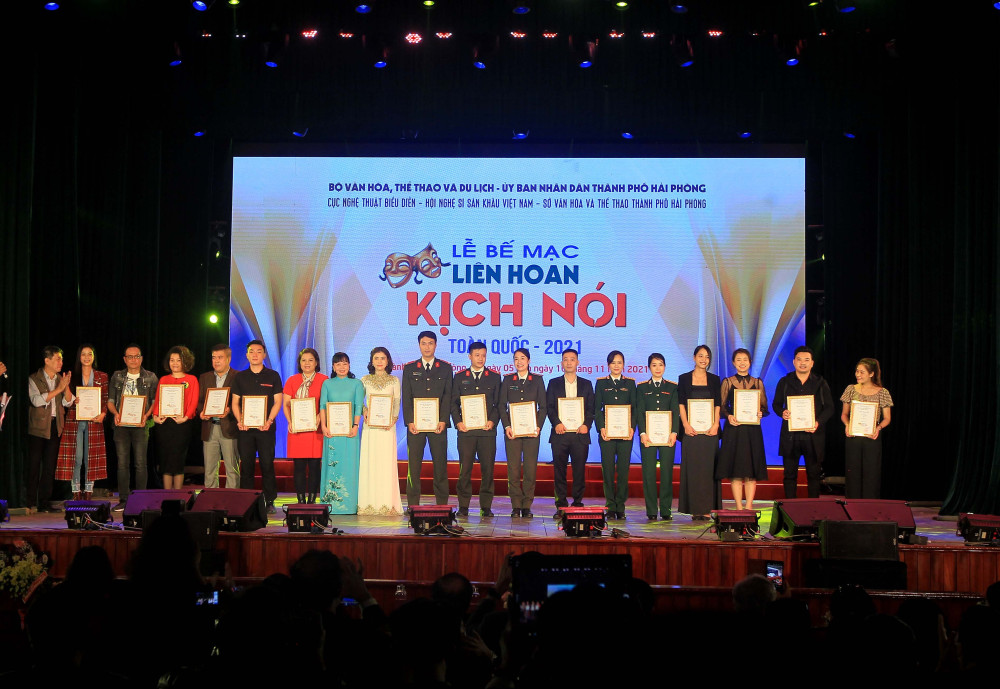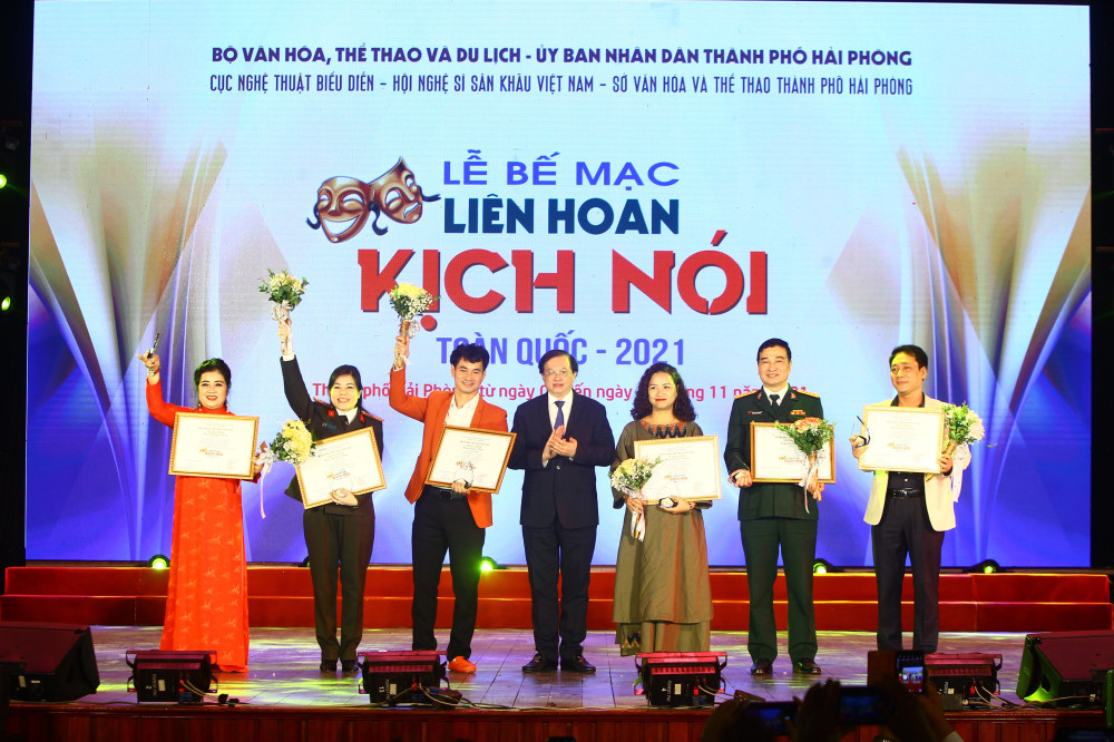 Sáng 17/11, tại Nhà hát Tháng Tám, Liên hoan Sân khấu kịch nói toàn quốc 2021 đã chính thức bế mạc sau 12 ngày diễn ra sôi nổi (từ ngày 5-17/11). Thứ trưởng Bộ Văn hóa Thể thao và Du lịch Tạ Quang Đông tới dự buổi lễ.
