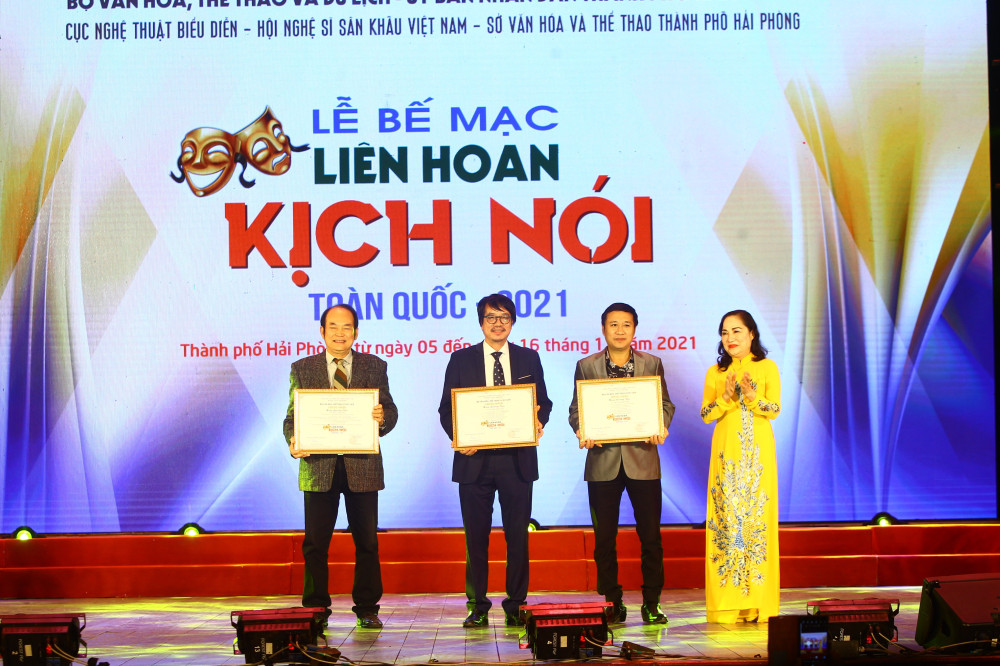 Kết quả, Hội đồng nghệ thuật Liên hoan đã trao Huy chương Vàng dành cho 6 tác phẩm xuất sắc nhất là: “Con đò của mẹ” (Nhà hát Công an nhân dân), “Điều còn lại” và “Thiên Mệnh” (Nhà hát Kịch Việt Nam), “Làng song sinh” (Nhà hát Kịch Hà Nội), “Hố đen” (Nhà hát Kịch nói Quân đội), “Làm vua” (Công ty TNHH NTSK Lệ Ngọc).
