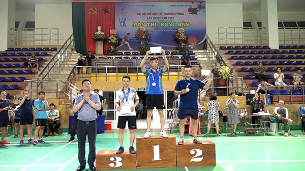 Chiều 9/6, tại Nhà thi đấu Trung tâm Văn hóa, Thông tin và Thể thao huyện An Lão, Sở Văn hóa và Thể thao thành phố phối hợp với UBND huyện An Lão tổ chức Bế mạc và trao giải môn thi đấu Bóng bàn Đại hội Thể dục thể thao Hải Phòng lần thứ 9 năm 2022.