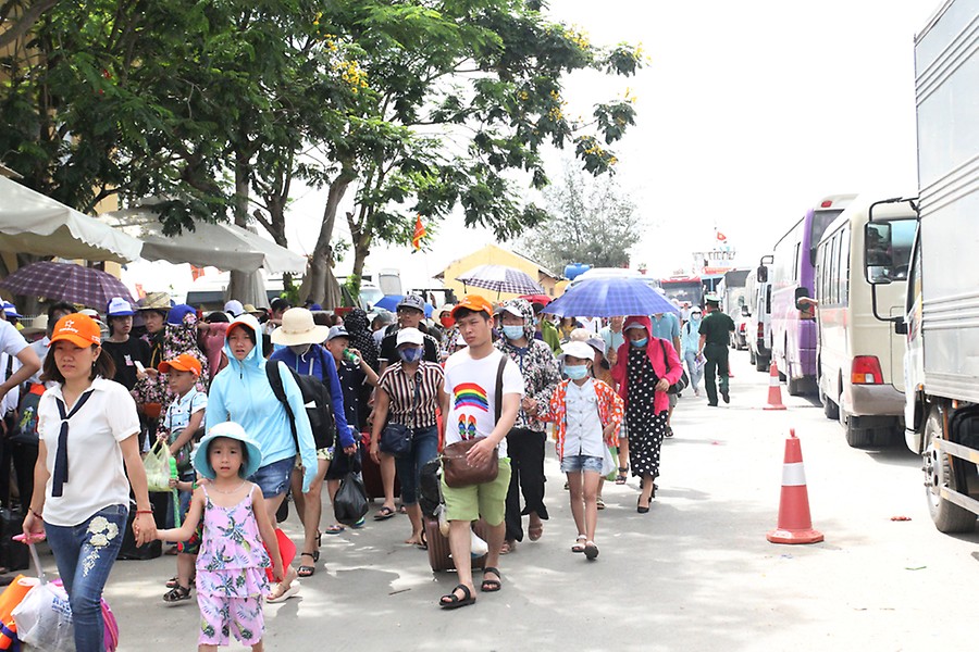 Du khách mệt mỏi vì bị tắc nghẽn quá lâu.