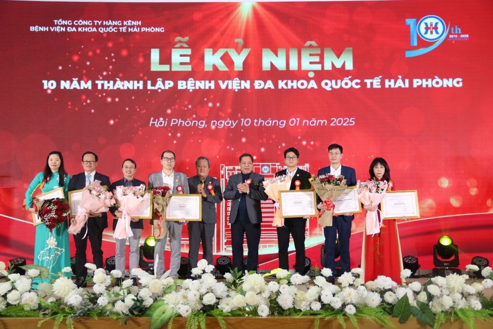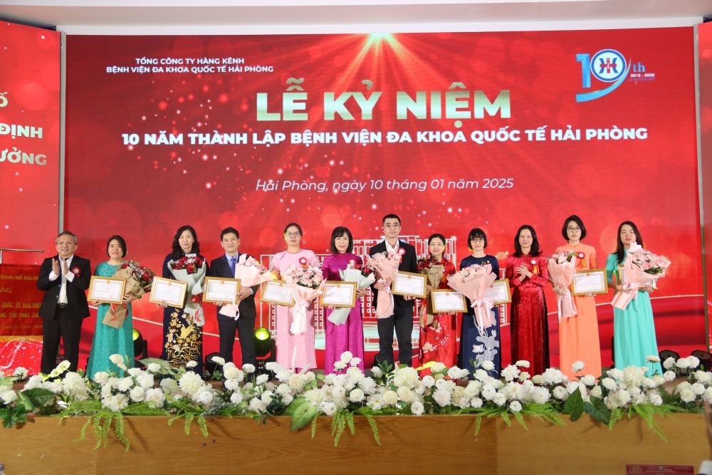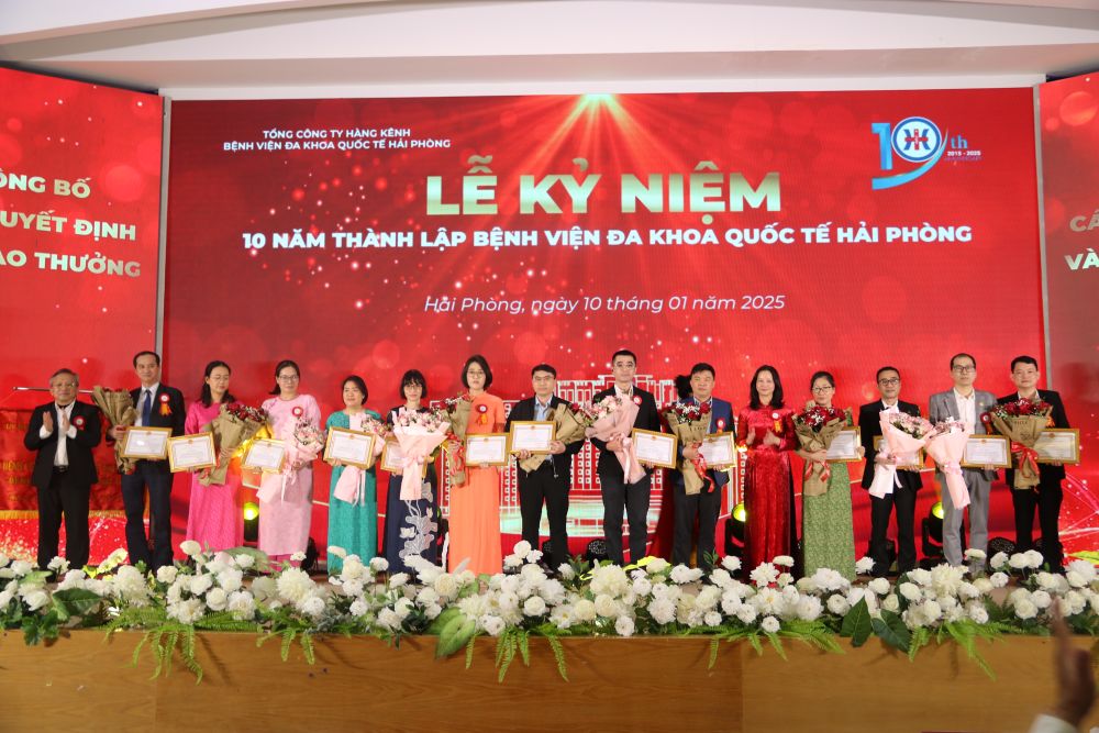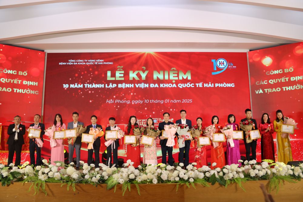 Nhân dịp này, UBND thành phố trao tặng Bệnh viện bức trướng với nội dung “Đổi mới-Tận tâm-Nâng tầm-Phát triển”. Hiệp Hội bệnh viện tư nhân Việt Nam trao tặng Bệnh viện Bằng khen Tập thể Bệnh viện xuất sắc, trao tặng Kỷ niệm chương cho 2 cá nhân, Bằng khen cho 7 tập thể và 10 cá nhân có thành tích xuất sắc. Sở Y tế tặng Giấy khen cho 10 tập thể và 30 cá nhân có thành tích đóng góp trong xây dựng và phát triển Bệnh viện đa khoa Quốc tế Hải Phòng.