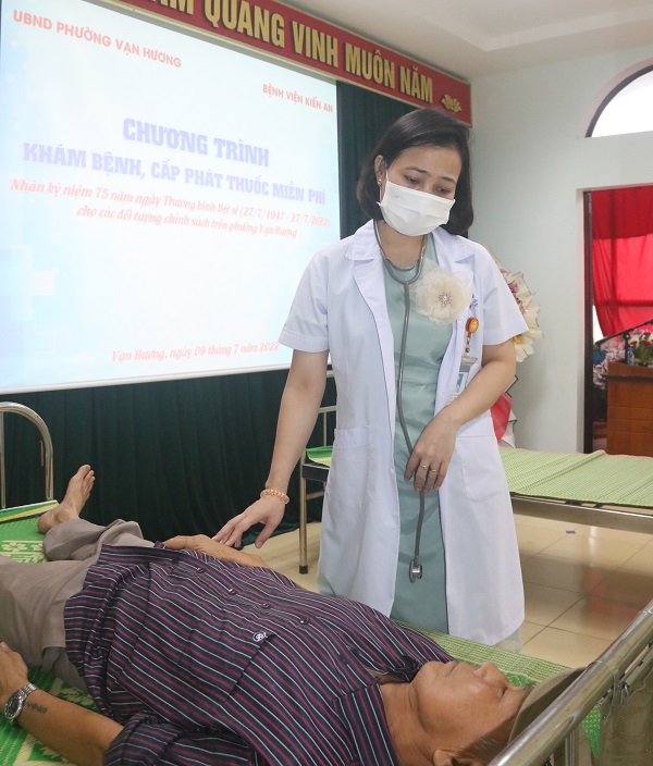 Cùng với việc khám, chữa bệnh, cấp phát thuốc miễn phí, các bác sỹ Bệnh viện Kiến An đã tư vấn cho người dân về chế độ dinh dưỡng và hướng dẫn người dân tự chăm sóc một số bệnh thường gặp; tư vấn về tầm quan trọng của khám sức khỏe định kỳ… cho gần 50 đối tượng thương binh, bệnh binh, gia đình liệt sỹ, người nhiễm chất độc gia cam trên địa bàn phường Vạn Hương.
