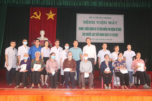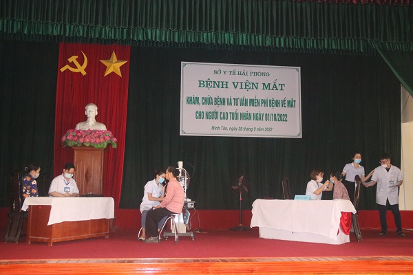 Nhân dịp kỷ niệm Ngày Quốc tế người cao tuổi (01/10), 74 năm Ngày kỷ niệm Ngày truyền thống Thủy Nguyên quật khởi (25/10/1948-25/10/2022) và 14 năm Ngày thành lập Bệnh viện mắt Hải Phòng (9/10/2008-9/10/2022), sáng 28/9, Bệnh viện Mắt Hải Phòng phối hợp Trung tâm Y tế huyện Thủy Nguyên tổ chức buổi khám bệnh và cấp thuốc miễn phí cho hơn 300 người cao tuổi trên địa bàn xã Minh Tân (huyện Thủy Nguyên).