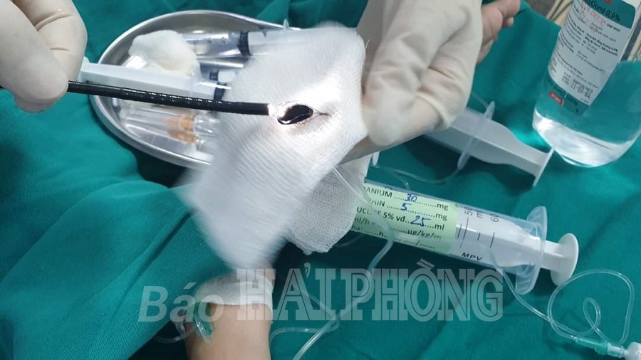 Cụ thể, vào hồi 20 giờ 30 ngày 31/10, Khoa Hồi sức tích cực và chống độc (Bệnh viện Trẻ em Hải Phòng) tiếp nhận bệnh nhi P.Q.C., 14 tháng tuổi, ở huyện Vĩnh Bảo vào viện trong tình trạng bị chấn thương vùng đầu do ngã. Qua khai thác tiền sử bệnh được biết trong lúc chơi tại gia đình, cháu bị ngã sấp mặt xuống nền cứng, gãy răng, bầm tím mặt, sau ngã trẻ tím tái. Cháu được chuyển tới Bệnh viện đa khoa huyện Vĩnh Bảo cấp cứu, sau đó chuyển lên Bệnh viện Trẻ em Hải Phòng. Tại đây, bệnh nhi được nội soi phế quản, phát hiện 1 dị vật màu đen, trơn nhẵn choán chỗ gần hoàn toàn phế quản gốc phải, các bác sĩ lấy dị vật ra ngoài thành công. Dị vật là hạt na.
