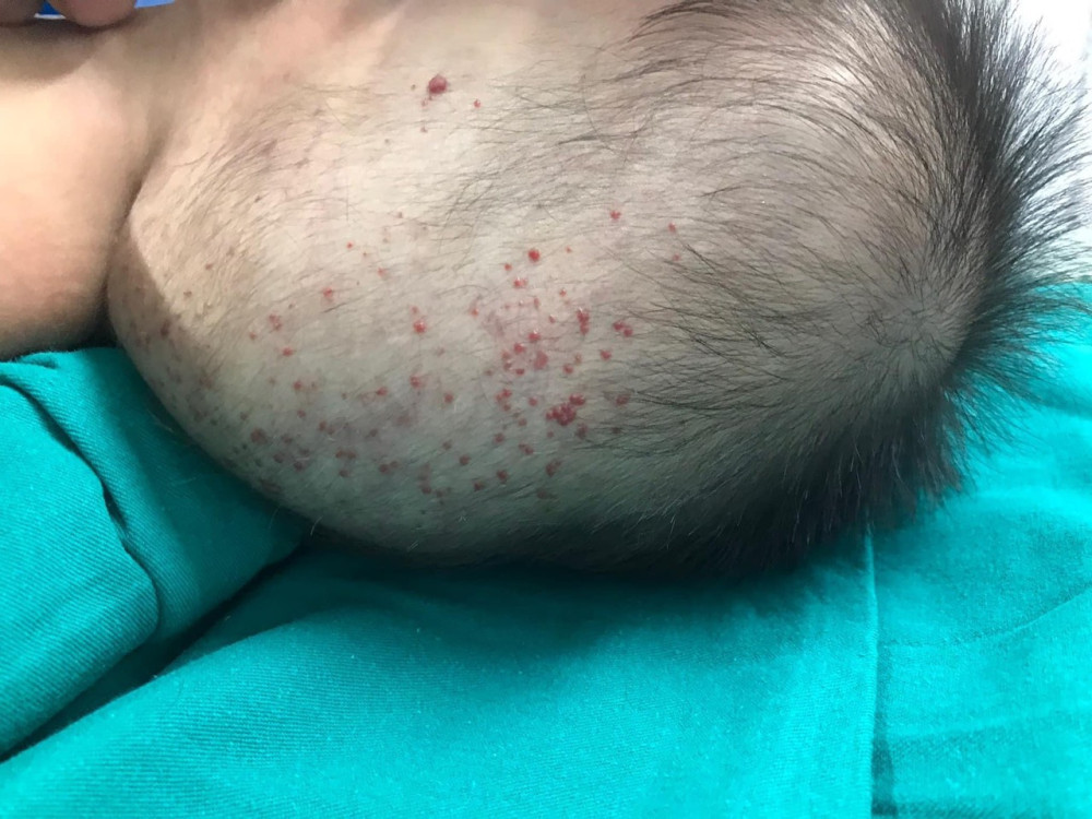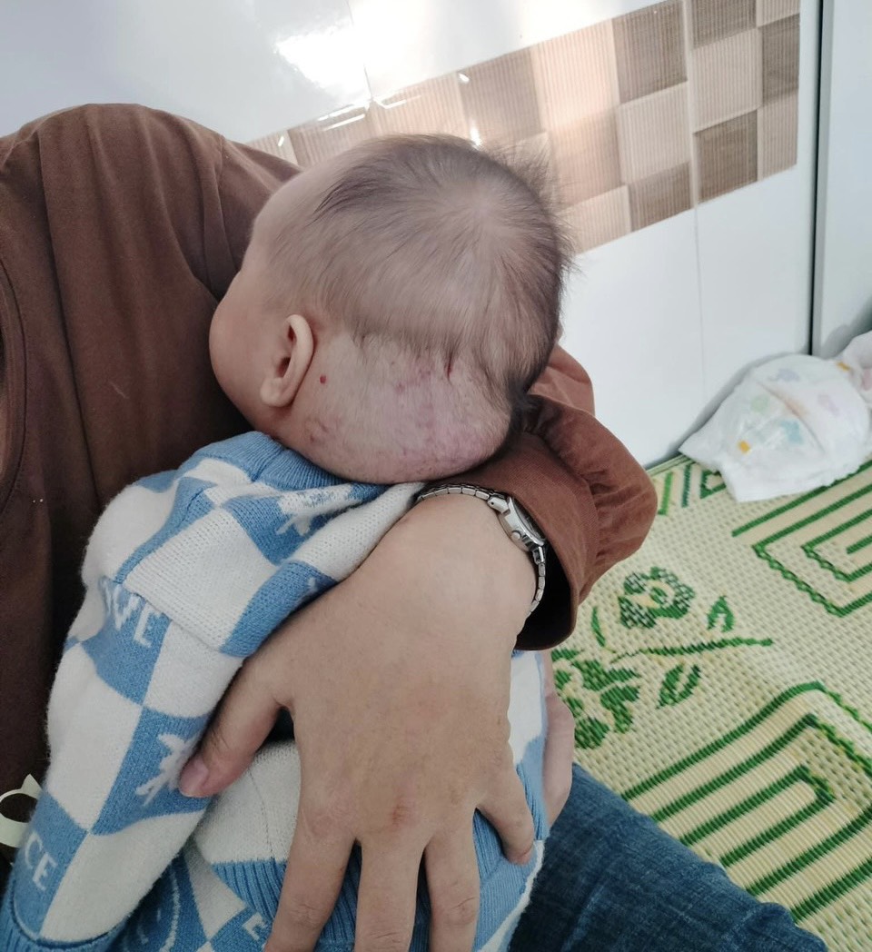 ThS. BSCKII Đặng Quốc Hùng, Trưởng khoa Ngoại chấn thương và Bỏng tạo hình, Bệnh viện Trẻ em Hải Phòng cho biết, cháu Đ.T.H, sinh năm 2022, địa chỉ tại Thị trấn Minh Đức, huyện Thủy Nguyên, Hải Phòng có một khối u bẩm sinh, khối u to ngay từ khi sinh ra vùng đầu gáy với đường kinh 10-15cm, danh giới không rõ, mật độ căng, tức, da bên trên khối u có những nốt chấm đỏ dạng u máu.