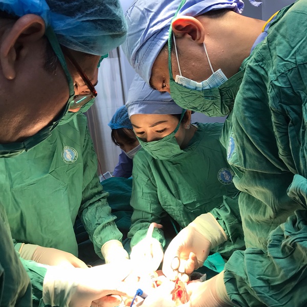 Đến sáng 11/7/2023, ê kíp 4 bác sĩ của Bệnh viện Trẻ em Hải Phòng, trong đó trưởng kíp là bác sĩ Đặng Quốc Hùng, Trưởng khoa Ngoại chấn thương và Bỏng tạo hình đã tiến hành phẫu thuật tạo hình mổ cắt u, tạo hình chuyển vạt da. Sau 2 giờ đồng hồ ca phẫu thuật đã thành công tốt đẹp. Sau mổ, các chức năng sinh tồn của cháu ổn định, hiện cháu vẫn tiếp tục được theo dõi tại khoa. Dự kiến khoảng 5-7 ngày tới cháu sẽ ra viện.
