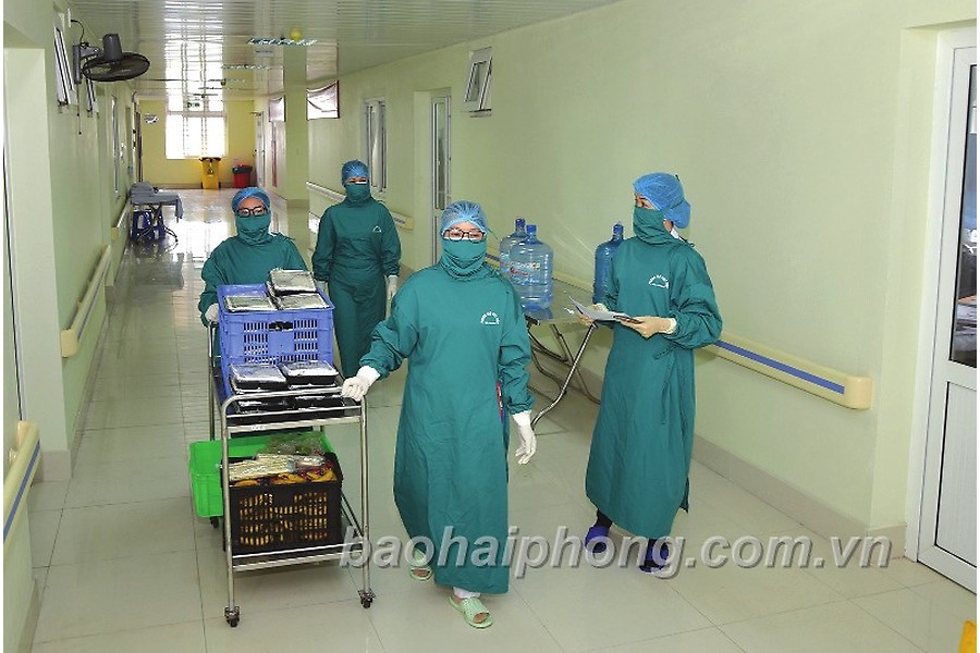 Ngoài công việc hằng ngày phụ trách hậu cần phục vụ cán bộ, viên chức làm việc tại bệnh viện, những người làm việc trong bếp ăn Bệnh viện Việt Tiệp cơ sở 2 phải chuẩn bị thêm hàng trăm suất ăn cho những người đang phải cách ly.