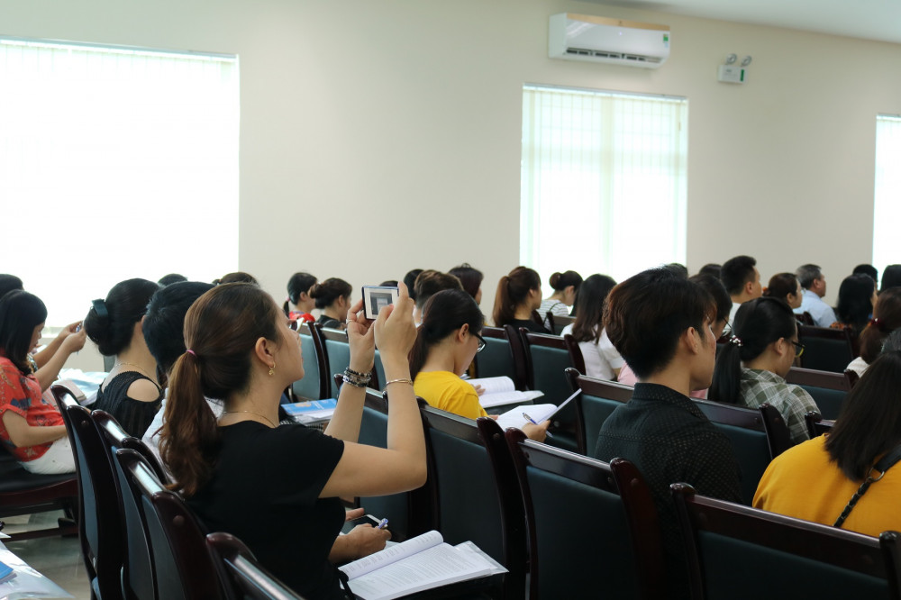 Các đại biểu cẩn thận ghi chép và chụp lại nội dung thông tin trình chiếu tại hội nghị