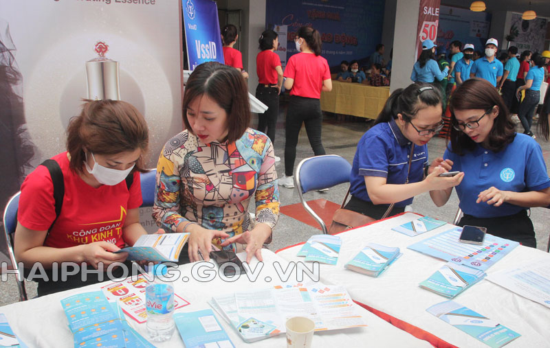 Sáng 24/4, tại Cung Văn hóa Lao động Hữu nghị Việt Tiệp, Bảo hiểm xã hội (BHXH) thành phố Hải Phòng tổ chức hướng dẫn, hỗ trợ người lao động đăng ký, sử dụng ứng dụng “VssID – Bảo hiểm xã hội số”. Đây là hoạt động của BHXH thành phố Hải Phòng trong khuôn khổ chương trình phát động Tháng Công nhân năm 2021.
