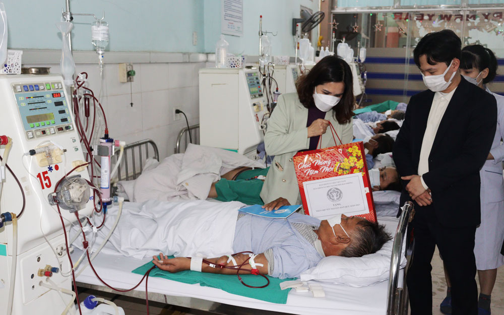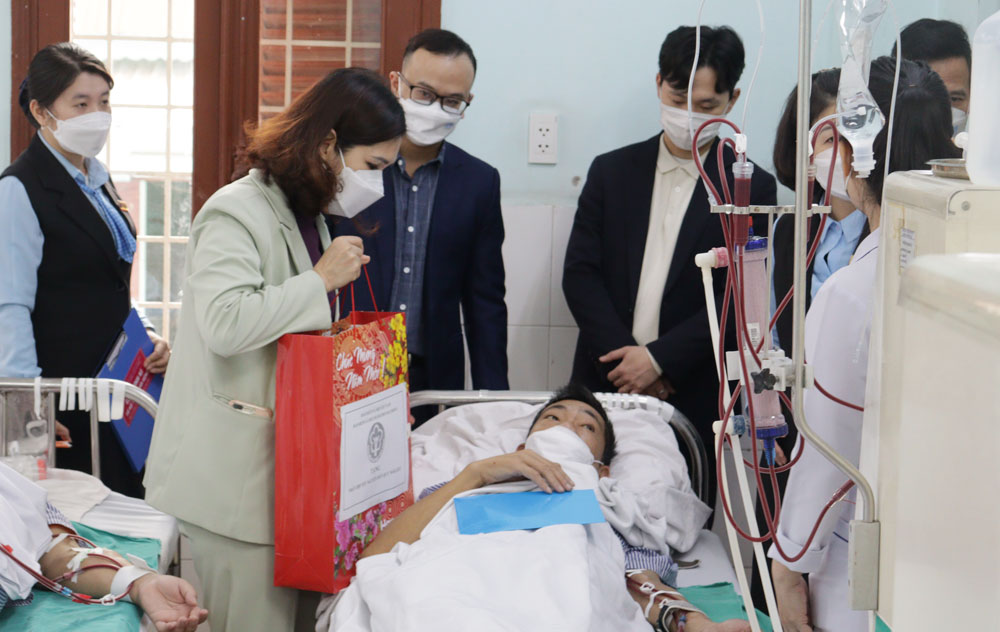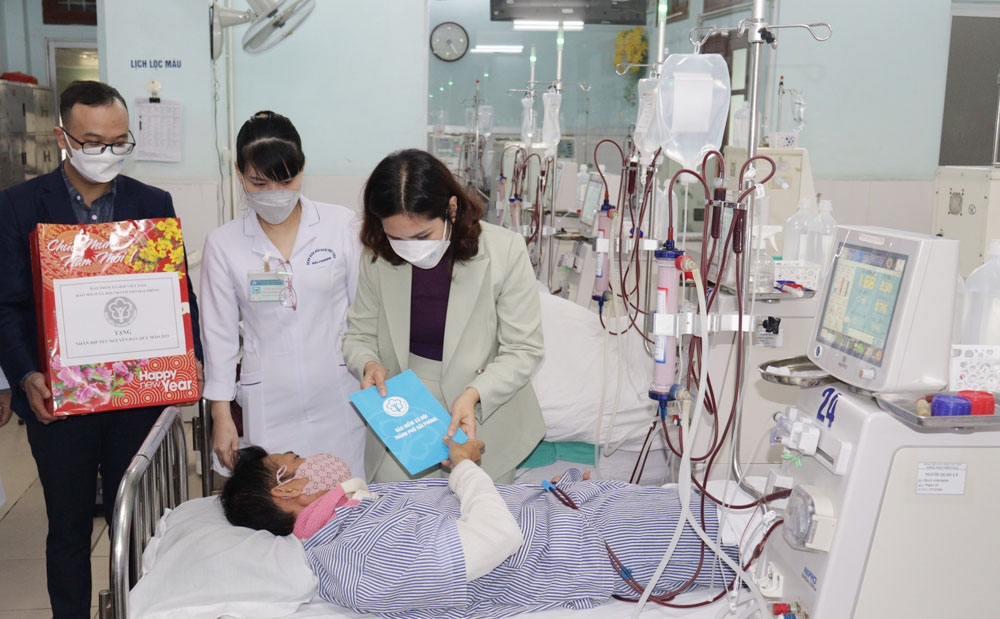 Đoàn công tác đã đến thăm, động viên và trao tặng 20 suất quà (mỗi suất trị giá 1,5 triệu đồng) cho các bệnh nhân tham gia BHYT có hoàn cảnh khó khăn đang điều trị tại Khoa thận nhân tạo, Trung tâm ung bướu (Bệnh viện Hữu nghị Việt Tiệp) và Khoa Nội tổng hợp (Bệnh viện Trẻ em Hải Phòng), góp phần động viên tinh thần cho các bệnh nhân trong dịp Tết cổ truyền của dân tộc.