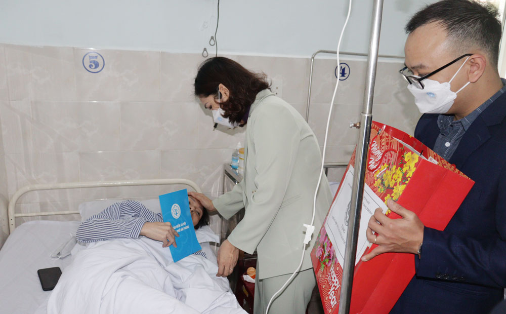 Nhân dịp Tết Nguyên đán Quý Mão năm 2023, sáng 5/1, Đoàn công tác của BHXH thành phố do bà Đinh Thị Lan Hương, Phó Giám đốc BHXH thành phố làm Trưởng Đoàn đi thăm hỏi, động viên, trao tặng quà cho các bệnh nhân tham gia BHYT có hoàn cảnh khó khăn đang điều trị tại Bệnh viện Hữu nghị Việt Tiệp và Bệnh viện Trẻ em Hải Phòng.