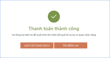 Khi thanh toán thành công, hệ thống sẽ điều hướng quay trở lại giao diện của Cổng DVC Quốc gia với thông báo “Thanh toán thành công”.