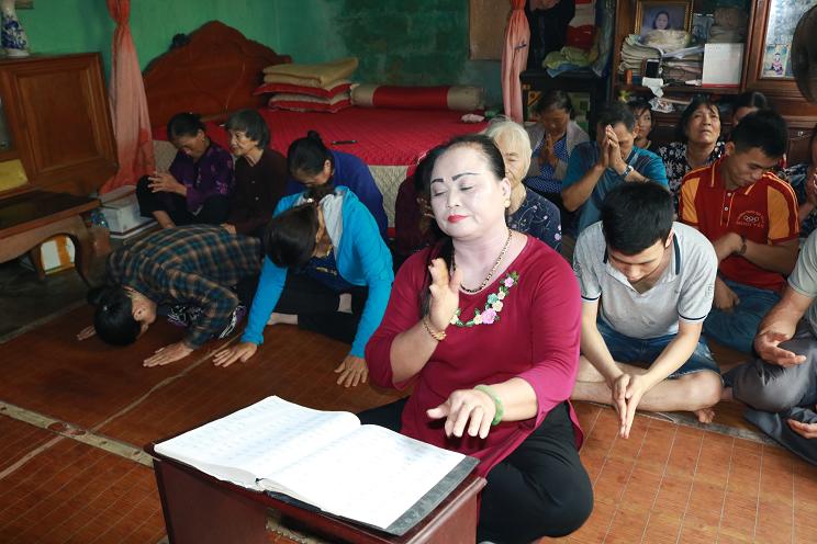 Theo tìm hiểu của chúng tôi, sau khi chồng và con đi lao động ở nước ngoài, từ năm 2014, bà Lê Thị Dung bất ngờ lập điện thờ trong nhà và ngoài sân, lôi kéo thêm một số “con nhang, đệ tử” rồi tự xưng là “quan thầy” hành nghề xem bói và chữa bệnh cho những người bị bệnh nặng bị bệnh viện trả về như ung thư và nhiều loại bệnh khác. Khi được Dung chữa bệnh, thì bệnh nhân hoặc người nhà phải tự nguyện đặt lên ban thờ từ 10.000 đến 200.000 đồng.