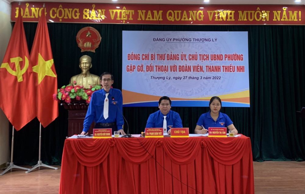 Thiết thực tổ chức các hoạt động chào mừng kỷ niệm 91 năm ngày thành lập Đoàn TNCS Hồ Chí Minh, Đại hội đại biểu Đoàn TNCS Hồ CHí Minh các cấp, Đoàn phường Thượng Lý vừa tham mưu cho Đảng ủy phường tổ chức thành công “Hội nghị đối thoại giữa đồng chí Bí thư Đảng ủy, Chủ tịch UBND phường với cán bộ, đoàn viên, thanh thiếu nhi”.