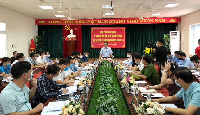 Chiều 23/6, đồng chí Trần Lưu Quang, Ủy viên Trung ương Đảng, Bí thư Thành ủy làm việc với Ban Chấp hành Đảng bộ huyện An Lão về kết quả thực hiện Nghị quyết Đại hội VIII Đảng bộ huyện nhiệm kỳ 2020-2025 và tình hình, kết quả thực hiện nhiệm vụ 6 tháng đầu năm 2021; phương hướng, nhiệm vụ trong thời gian tới.
