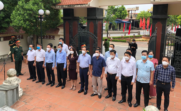 Trước đó, đồng chí Trần Lưu Quang, Bí thư Thành ủy cùng các đồng chí trong Đoàn công tác đã đến dương hương tại Đài tưởng niệm liệt sĩ Lương Khánh Thiện và kiểm tra thực tế xây dựng nông thôn mới kiểu mẫu trên địa bàn xã Tân Dân.