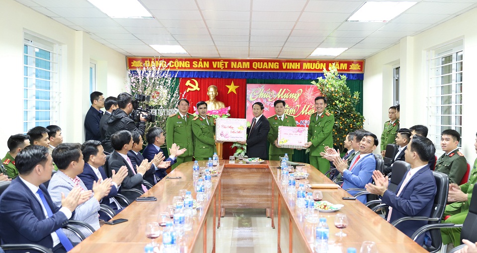 Nhân dịp năm mới, đồng chí Bí thư Thành ủy Lê Văn Thành chúc toàn thể cán bộ, chiến sỹ Công an huyện, phát huy thành tích đạt được, tiếp tục đoàn kết, sẵn sàng vượt qua mọi khó khăn, hoàn thành tốt mọi nhiệm vụ, để không phụ lòng mong mỏi của Đảng bộ, Chính quyền và nhân dân giao phó.