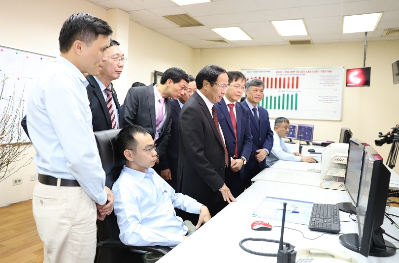 Bí thư Thành ủy Lê Văn Thành và các đồng chí lãnh đạo thành phố thăm, động viên cán bộ, công nhân khu vực điều hành sản xuất Công ty xi măng Vicem Hải Phòng
