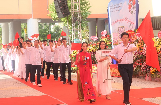 Các em học sinh Trường THPT chuyên Trần Phú hân hoan chào đón ngày khai trường