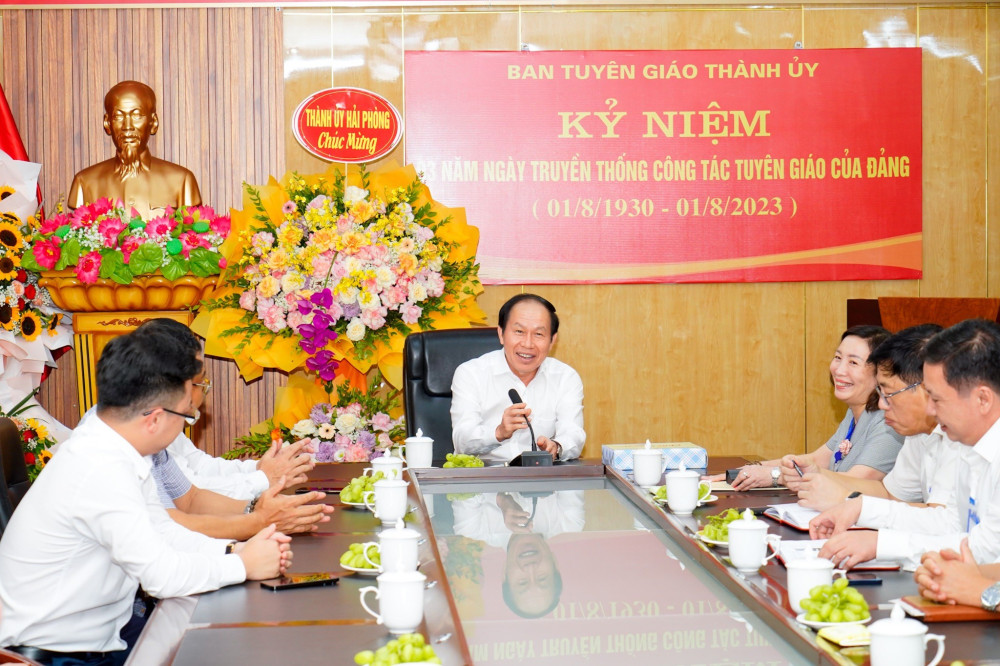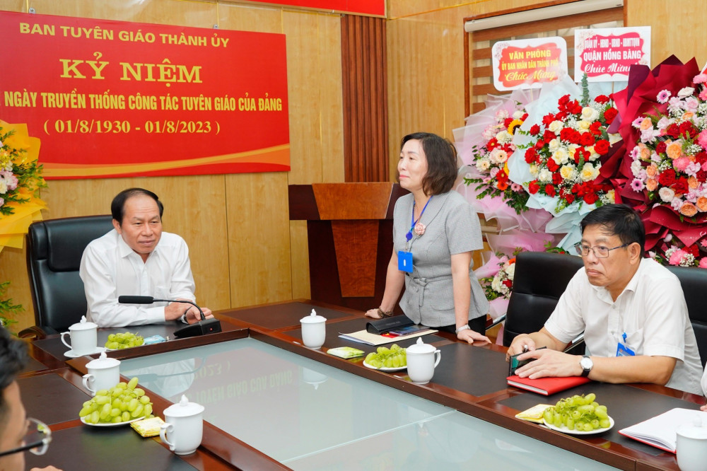 Đánh giá cao những kết quả hoạt động của Ban Tuyên giáo Thành ủy, đồng chí Bí thư Thành ủy lưu ý, trong bối cảnh bùng nổ thông tin hiện nay, lĩnh vực tư tưởng, lý luận đang hằng ngày, hằng giờ phải đối mặt với những thông tin sai lệch, xuyên tạc của các thế lực thù địch. Công tác bảo vệ nền tảng tư tưởng của Đảng, đấu tranh, phản bác các quan điểm sai trái, thù địch đòi hỏi tập thể lãnh đạo, cán bộ, công chức Ban Tuyên giáo Thành uỷ và ngành Tuyên giáo thành phố phải nắm vững chủ trương, đường lối của Đảng, chính sách, pháp luật của Nhà nước, của từng địa phương, đơn vị. Đồng thời, làm tốt công tác dự báo tình hình, dự báo công tác tư tưởng nhằm tạo sự thống nhất trong toàn Đảng bộ và toàn dân. Đồng chí Bí thư Thành ủy chúc tập thể Ban Tuyên giáo Thành ủy tiếp tục phát huy truyền thống đoàn kết, bản lĩnh, trí tuệ, sáng tạo, “lựa chọn trúng việc, xác định đúng vai” để thực hiện nhiệm vụ trong công tác định hướng tư tưởng, phát huy vai trò tiên phong, chủ lực trong bảo vệ nền tảng tư tưởng của Đảng, bảo vệ Đảng, bảo vệ chế độ và sự nghiệp cách mạng của Nhân dân.