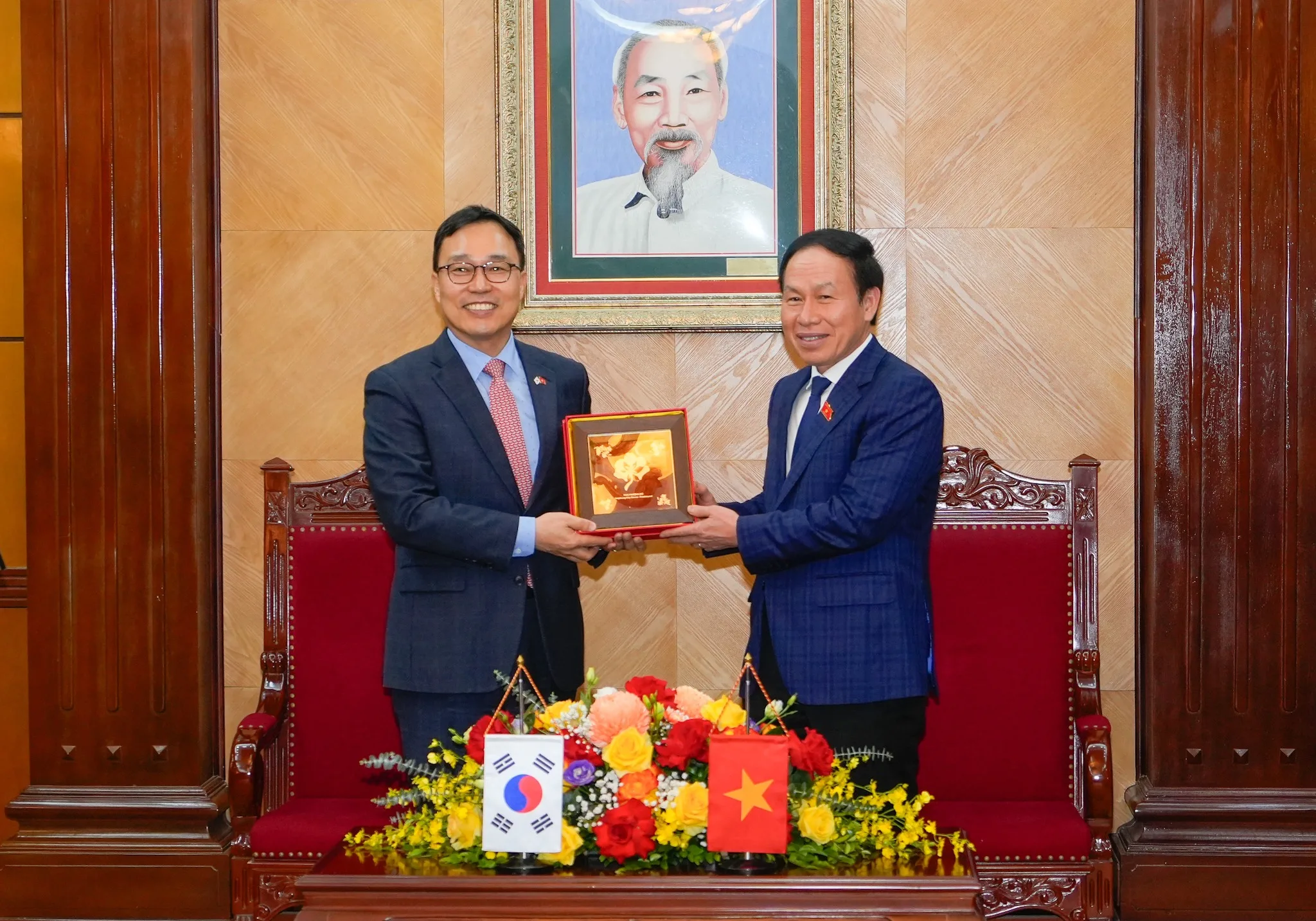Hải Phòng đang có định hướng xây dựng Khu kinh tế phía Nam thành phố, vì vậy thành phố tích cực chào đón các doanh nghiệp Hàn Quốc đầu tư trong các lĩnh vực công nghiệp công nghệ cao như chíp điện tử, chất bán dẫn là thế mạnh của Hàn Quốc. Thành phố cũng đang nghiên cứu xây dựng Khu Thương mại tự do tại đây, vì vậy rất mong nhận được sự hỗ trợ, chia sẻ kinh nghiệm từ phía Hàn Quốc. Bên cạnh đó, thành phố mong muốn kết nối đường bay trực tiếp giữa Hải Phòng và Busan (Hàn Quốc). Ngoài các lĩnh vực về kinh tế, Hải Phòng cũng mong muốn hợp tác với Hàn Quốc trong các lĩnh vực y tế, giáo dục. Nhân dịp này, đồng chí Bí thư thành uỷ trân trọng mời ngài Đại sứ đến dự Lễ hội Hoa phượng đỏ năm 2024, sự kiện văn hoá tiêu biểu của Hải Phòng.