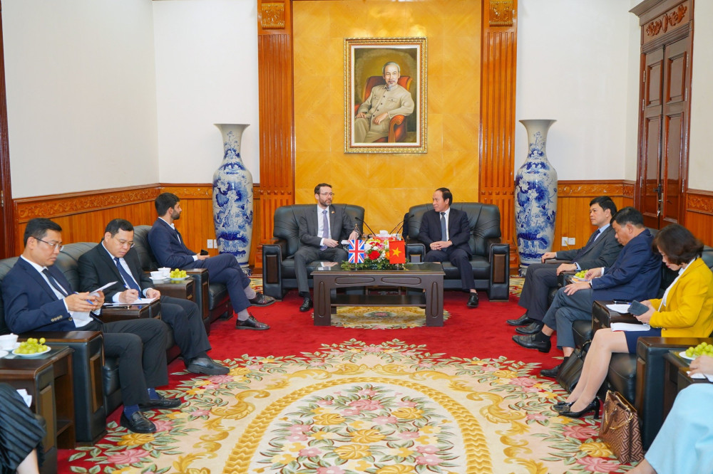 Chào đón Đoàn Đại sứ quán Vương quốc Liên hiệp Anh và Bắc Ireland tại Việt Nam đến thăm Hải Phòng đúng dịp Kỷ niệm 50 năm Ngày thiết lập quan hệ ngoại giao giữa hai nước, Bí thư thành uỷ cho biết Hải Phòng rất tích cực tham gia các hoạt động nhân dịp này. Thời gian qua, Hải Phòng và các Doanh nghiệp của Vương quốc Anh có nhiều nỗ lực thúc đẩy hợp tác giữa 02 bên với 9 dự án đang được triển khai. Bí thư thành uỷ, đánh giá cao các dự án thông qua hiệu quả kinh doanh, đầu tư và phương pháp quản lý hiện đại; trong lĩnh vực giáo dục, Vương quốc Anh đã hỗ trợ trường Đại học Hàng Hải trong việc đào tạo ngôn ngữ cho giáo viên, du học sinh. Bên cạnh đó, các tổ chức xã hội cũng đã hỗ trợ tích cực cho phụ nữ và trẻ em, nhất là trong việc chống hành vi buôn bán người…