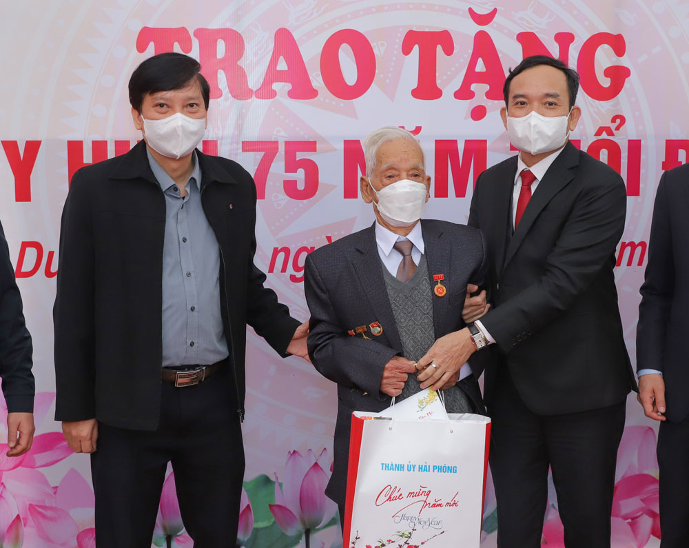 Tại quận Dương Kinh, đồng chí Bí thư Thành ủy đến trao tặng Huy hiệu 75 năm tuổi Đảng đợt 3/2/2022 cho đồng chí Đỗ Tuấn Thành, Trung tá Quân đội nghỉ hưu, nguyên Bí thư Đảng ủy xã Hưng Đạo (nay là phường Hưng Đạo), quận Dương Kinh (95 tuổi, hiện đang sinh hoạt tại Đảng bộ quận Dương Kinh, tại phường Hưng Đạo, quận Dương Kinh).