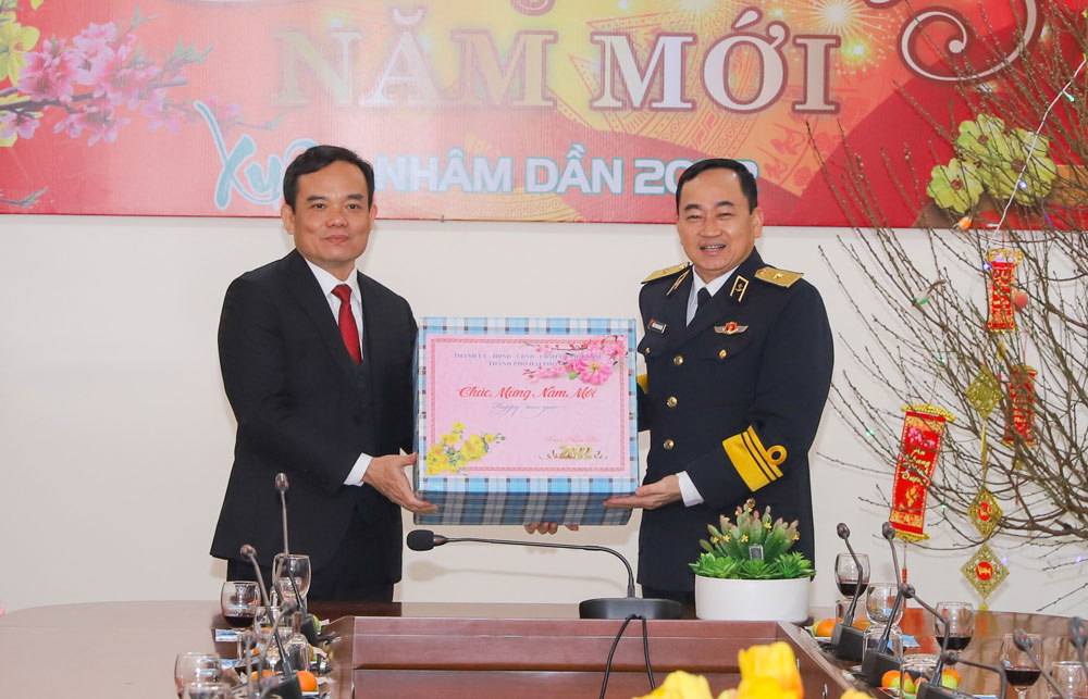 Đến thăm, chúc Tết Bộ Tư lệnh Hải Quân (số 38 Điện Biên Phủ, phường Minh Khai, quận Hồng Bàng) và Bộ Tư lệnh Quân khu 3 (số 8, đường Lê Duẩn, phường Bắc Sơn, quận Kiến An). Đồng chí Trần Lưu Quang, Bí thư Thành ủy thông tin một số nét cơ bản về tình hình kinh tế-xã hội của Hải Phòng năm 2021, định hướng phát triển năm 2022. Đồng chí khẳng định, những thành tựu mà Hải Phòng đạt được luôn có sự hỗ trợ, phối hợp tích cực từ các đơn vị của Quân đội đứng chân trên địa bàn, đặc biệt là vai trò bảo đảm quốc phòng và trật tự xã hội, giữ vững ổn định chính trị là tiền đề để phát triển kinh tế-xã hội.