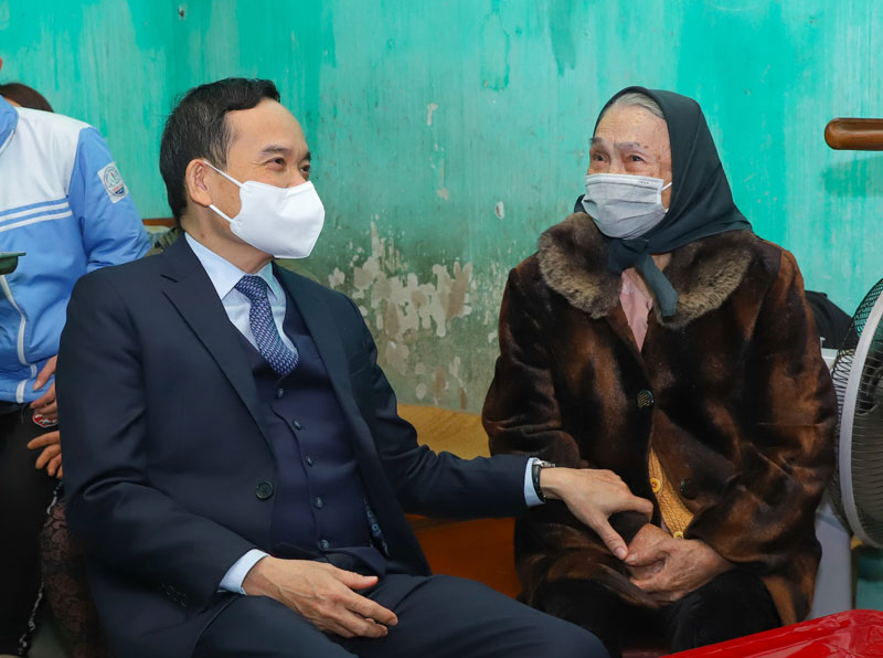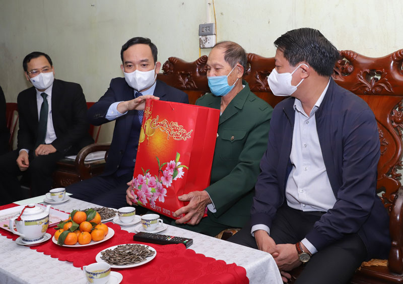 Đồng chí Bí thư Thành ủy đến đến thăm, tặng quà và chúc Tết bà Vũ Thị Chiến, sinh năm 1936, là hộ nghèo, tại Tổ dân phố Trữ Khê 2, phường Quán Trữ, quận Kiến An. Đồng chí đã ân cần thăm hỏi, chia sẻ, động viên gia đình bà; chúc bà và gia đình sức khoẻ, hạnh phúc và đón Tết cổ truyền vui tươi, đầm ấm.