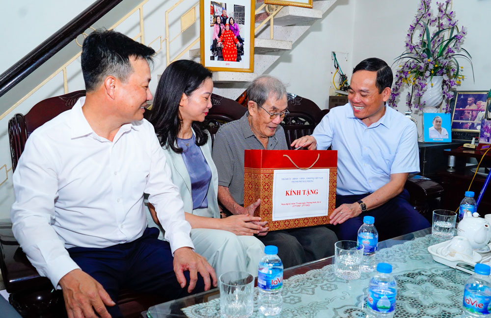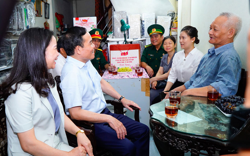 Đồng chí Bí thư Thành ủy đến thăm, tặng quà ông Tô Đình Long, sinh năm 1922, là bố liệt sỹ Tô Mạnh Hùng tại số 19/15/169 Trần Nguyên Hãn, phường Trần Nguyên Hãn. Đồng chí tri ân những hy sinh to lớn của gia đình đối với sự nghiệp cách mạng; đồng thời ân cần thăm hỏi sức khỏe, chúc ông sống vui, sống khỏe cùng con cháu, luôn là tấm gương sáng cho các thế hệ noi theo, động viên con cháu phát huy truyền thống gia đình đóng góp xây dựng thành phố ngày càng phát triển.