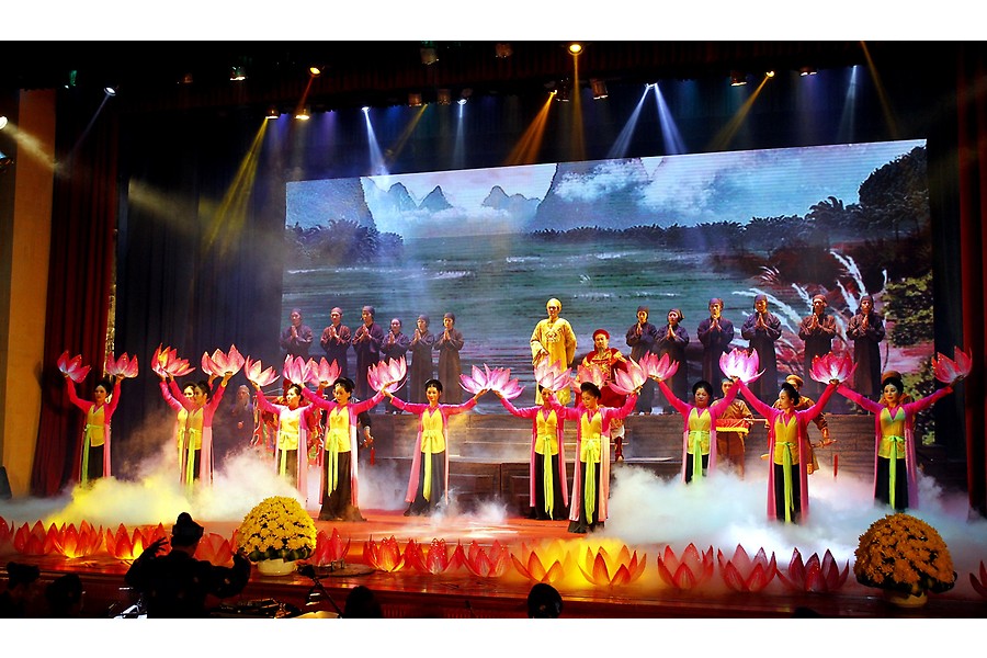 Biểu diễn Hoạt cảnh vở chèo “Hào khí Bạch Đằng giang” tại buổi gặp mặt.