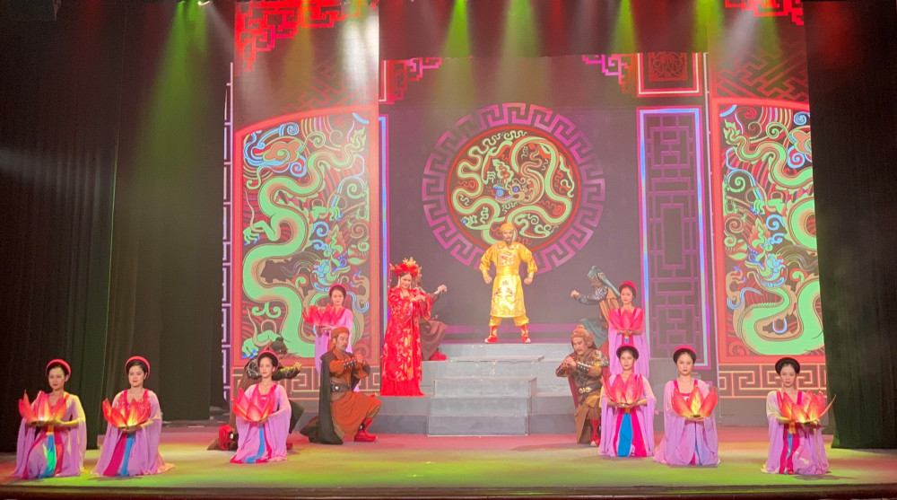 Tối 12/10, trong không khí tưng bừng chào mừng Đại hội Đảng bộ thành phố lần thứ XVI, tại Nhà hát thành phố, các nghệ sĩ, diễn viên Đoàn Chèo Hải Phòng và các đoàn nghệ thuật thành phố biểu diễn vở chèo “Hoàng đế tiền Lê” chào mừng Đại hội.