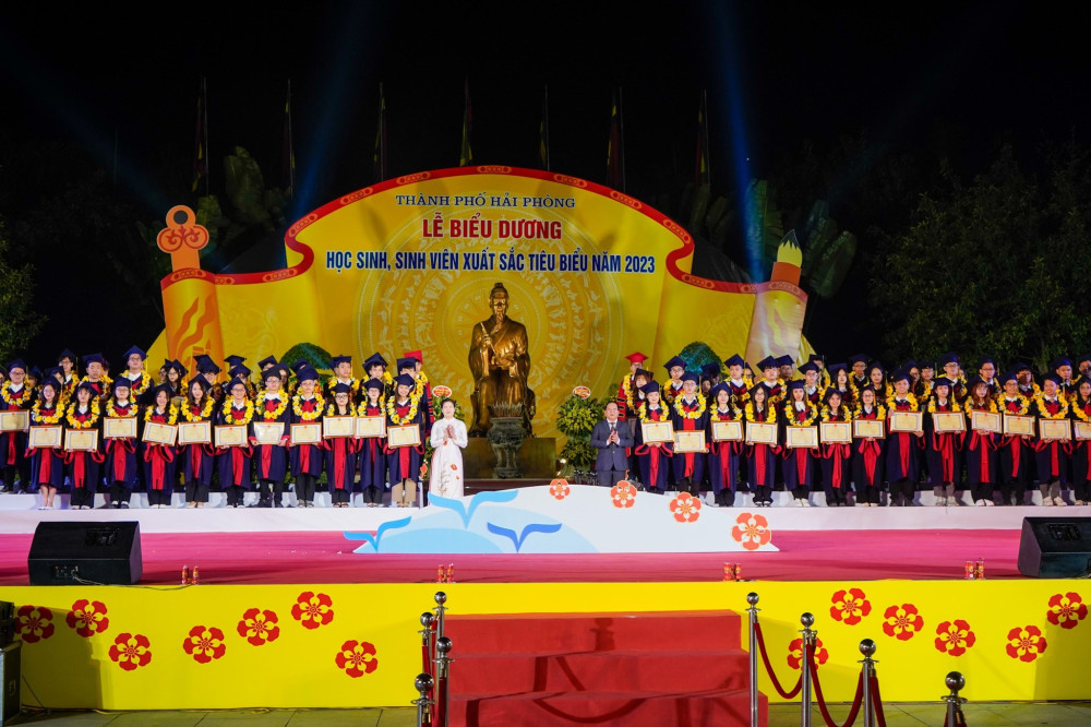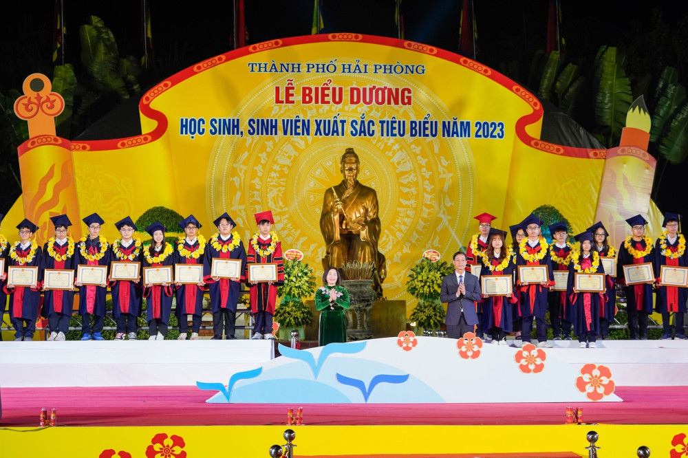 Năm 2023, thành phố biểu dương, tôn vinh 132 HSSV xuất sắc tiêu biểu, trong đó có 63 học sinh đoạt giải quốc tế, quốc gia các môn văn hoá (Kỳ thi do Bộ Giáo dục và Đào tạo tổ chức lựa chọn và cử đi); đoạt giải Nhất, giải Nhì, giải Ba trong các Kỳ thi học sinh giỏi các môn văn hóa, Cuộc thi Khoa học Kỹ thuật cấp quốc gia năm học 2022-2023; đoạt giải Ba trở lên trong các Cuộc thi: Chung kết Đường lên đỉnh Olympia (do Đài Truyền hình Việt Nam tổ chức) năm 2023 và Viết thư quốc tế UPU năm 2023; 23 học sinh Hải Phòng tham dự Kỳ thi tốt nghiệp Trung học phổ thông năm 2023 đạt điểm cao và đỗ vào Đại học, trường Đại học, Học viện trong hoặc ngoài nước; 46 sinh viên tốt nghiệp thủ khoa loại giỏi trở lên các trường Đại học trên địa bàn thành phố và sinh viên là người Hải Phòng tốt nghiệp thủ khoa loại giỏi trở lên các Đại học, trường Đại học, Học viện trên toàn quốc.