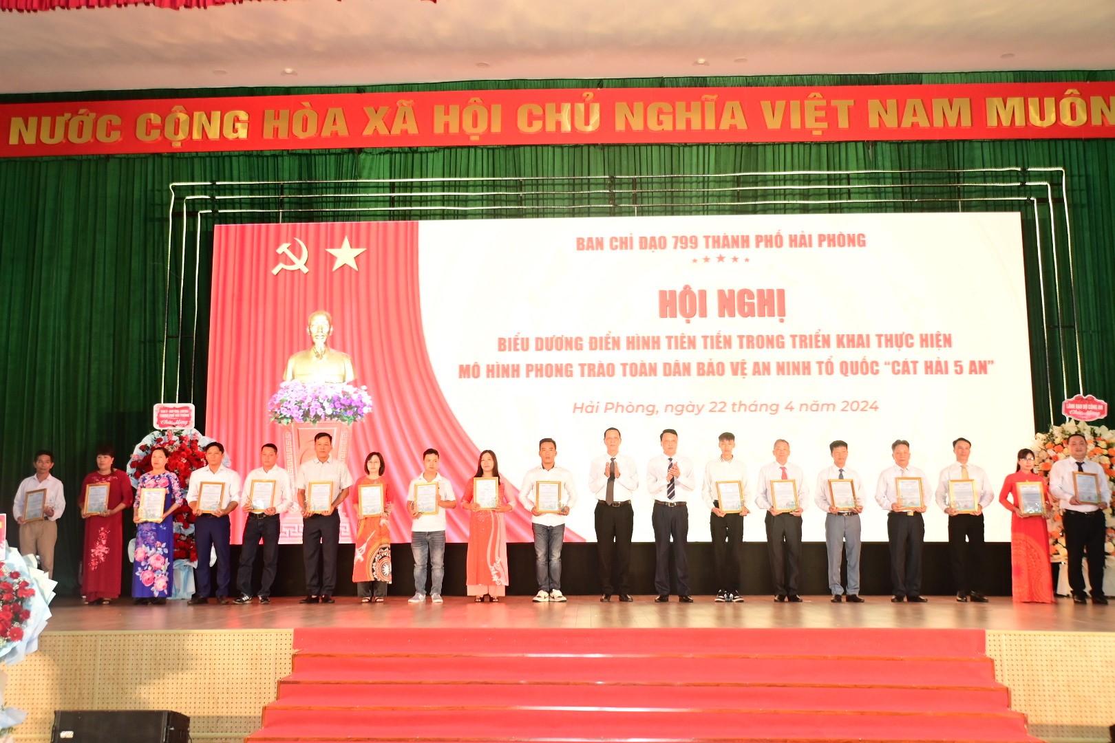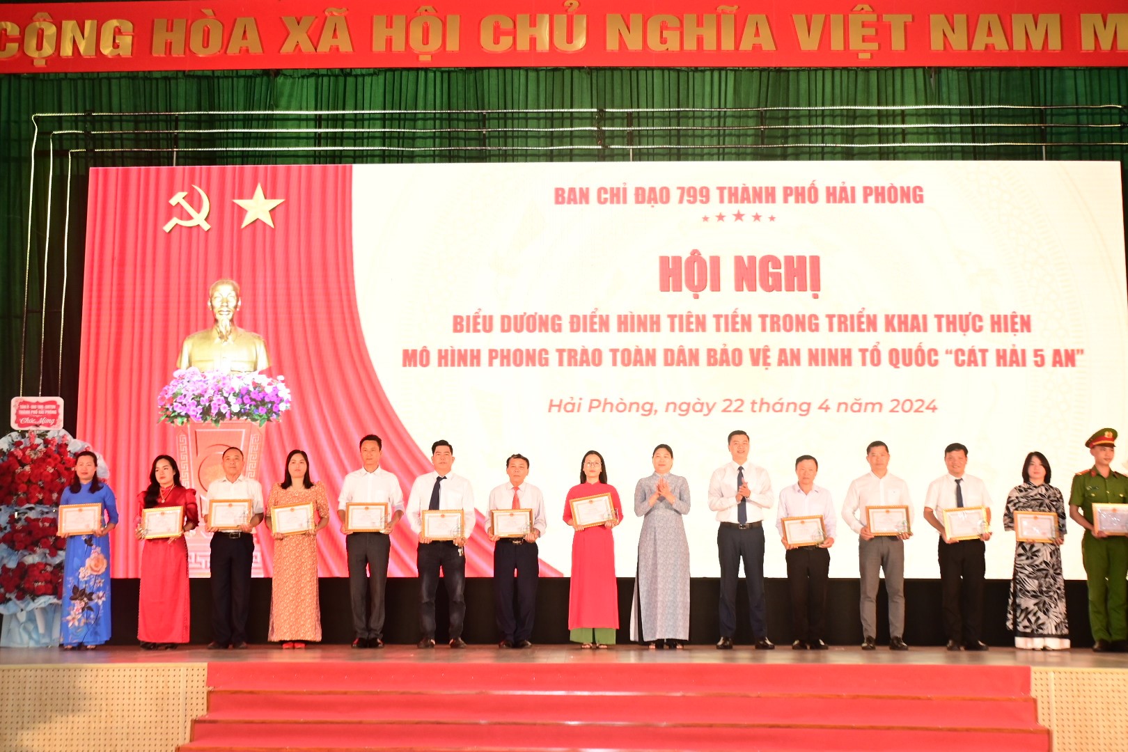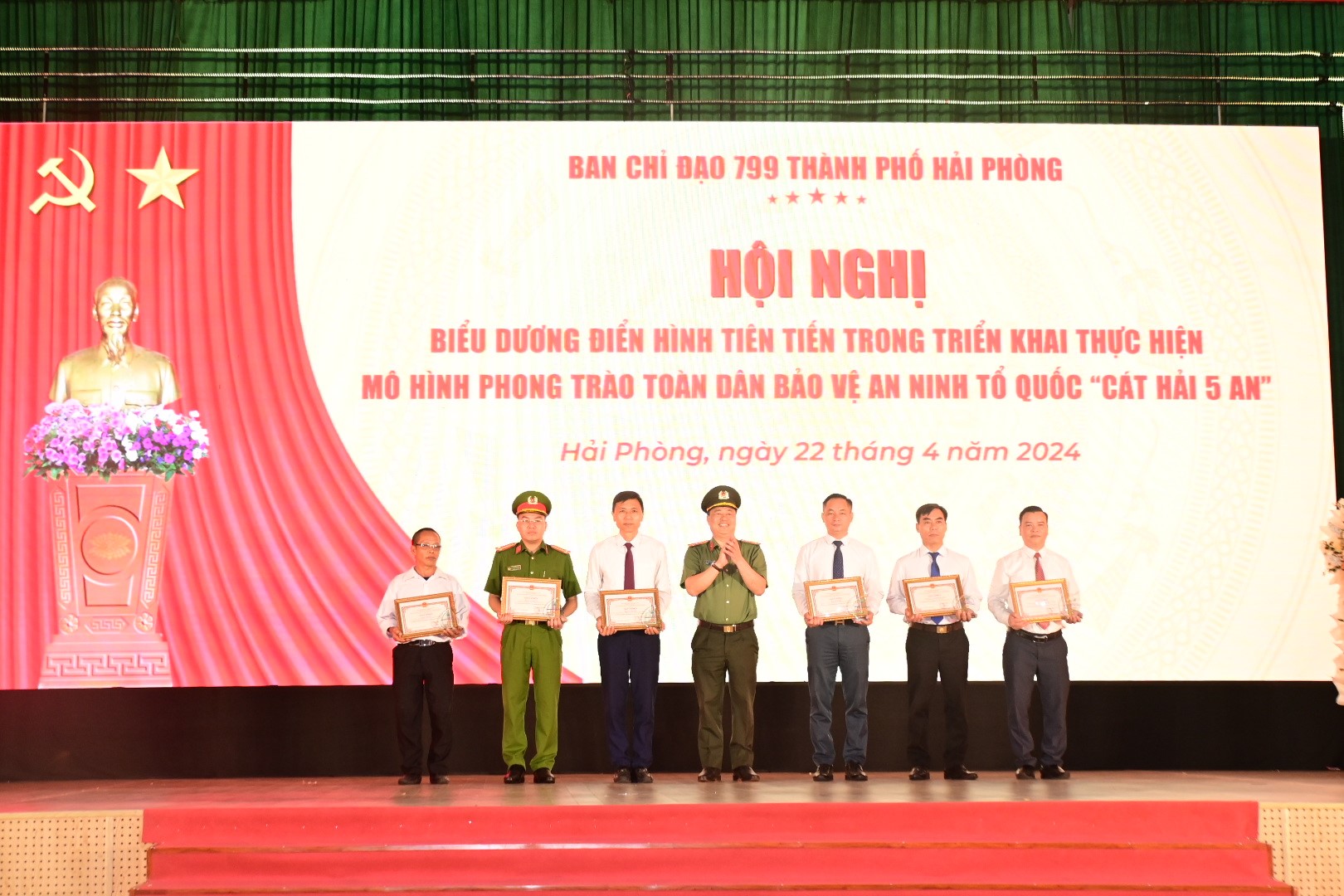 Nhân dịp này, Bộ trưởng Bộ Công an tặng Bằng khen đối với 02 tập thể và 04 cá nhân, Chủ tịch UBND thành phố tặng Bằng khen đối với 03 tập thể và 02 cá nhân, Cục Xây dựng phong trào toàn dân bảo vệ an ninh Tổ quốc tặng Giấy khen đối với 02 tập thể và 04 cá nhân, Giám đốc Công an thành phố Hải Phòng tặng Giấy khen đối với 01 tập thể và 04 cá nhân, Chủ tịch UBND huyện Cát Hải tặng Giấy khen đối với 05 tập thể, 15 cá nhân và kịp thời động viên, biểu dương 20 cá nhân là tấm gương “người tốt, việc tốt” tiêu biểu trên địa bàn huyện.