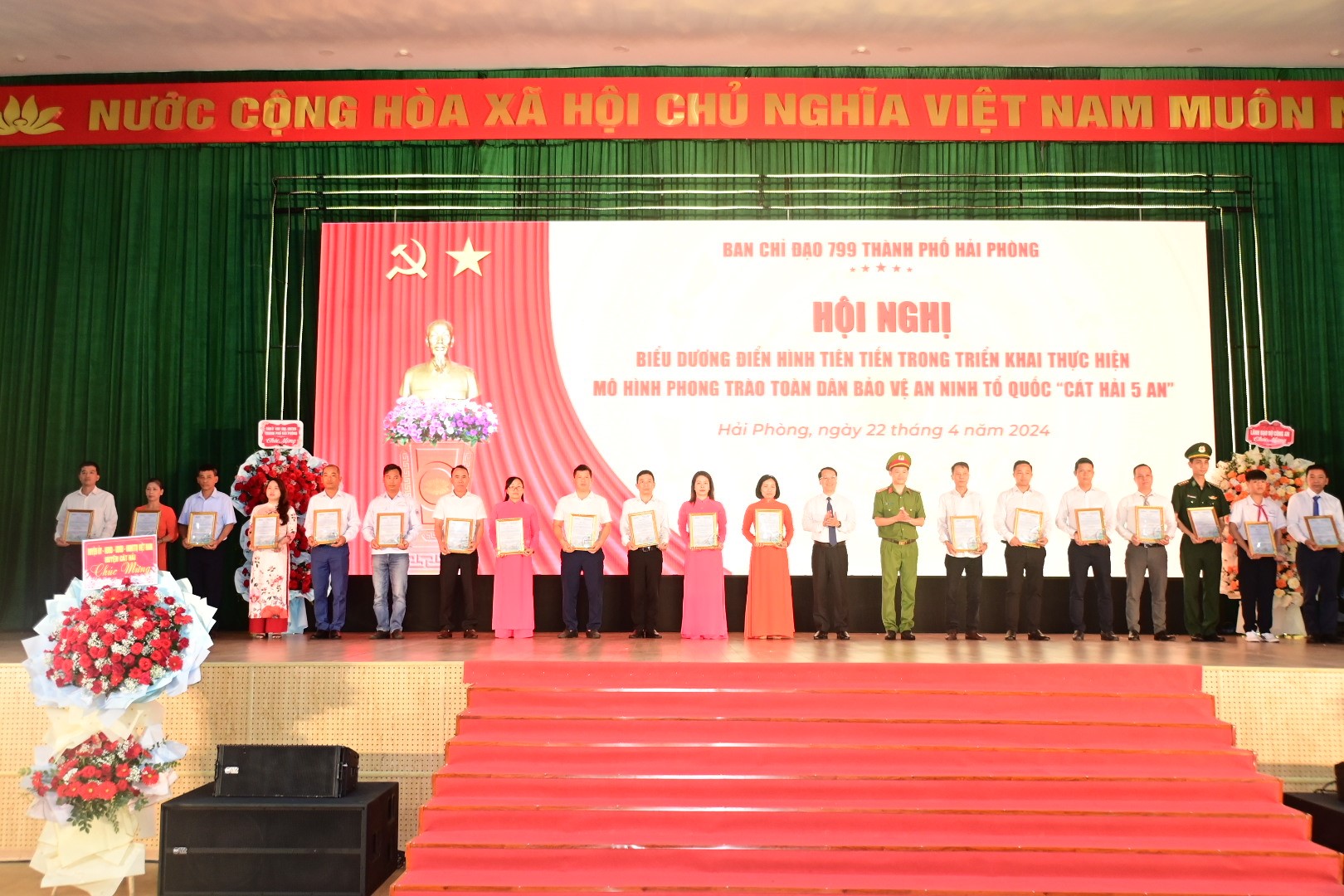 Sáng 22/4, Ban Chỉ đạo phòng chống tội phạm, tệ nạn xã hội và xây dựng phong trào toàn dân bảo vệ an ninh Tổ quốc thành phố Hải Phòng (Ban Chỉ đạo 799 thành phố) tổ chức Hội nghị biểu dương điển hình tiên tiến trong triển khai, thực hiện mô hình phong trào toàn dân bảo vệ an ninh Tổ quốc “Cát Hải 5 an”.