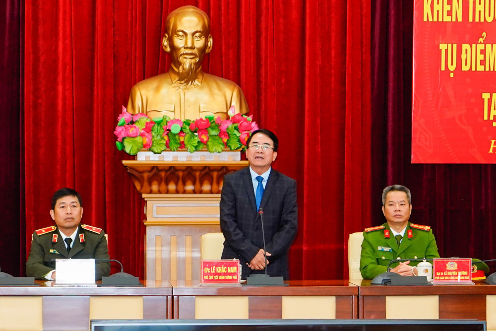 Thay mặt lãnh đạo thành phố, Phó Chủ tịch UBND thành phố Lê Khắc Nam ghi nhận và biểu dương thành tích xuất sắc của các lực lượng Công an thành phố trong việc triệt xóa được tụ điểm phức tạp về ma túy. Đây là chiến công xuất sắc, thể hiện sự nhạy bén và sáng tạo trong sử dụng các biện pháp công tác nghiệp vụ, quá trình bắt giữ các đối tượng bảo đảm tuyệt đối an toàn cho lực lượng tham gia.